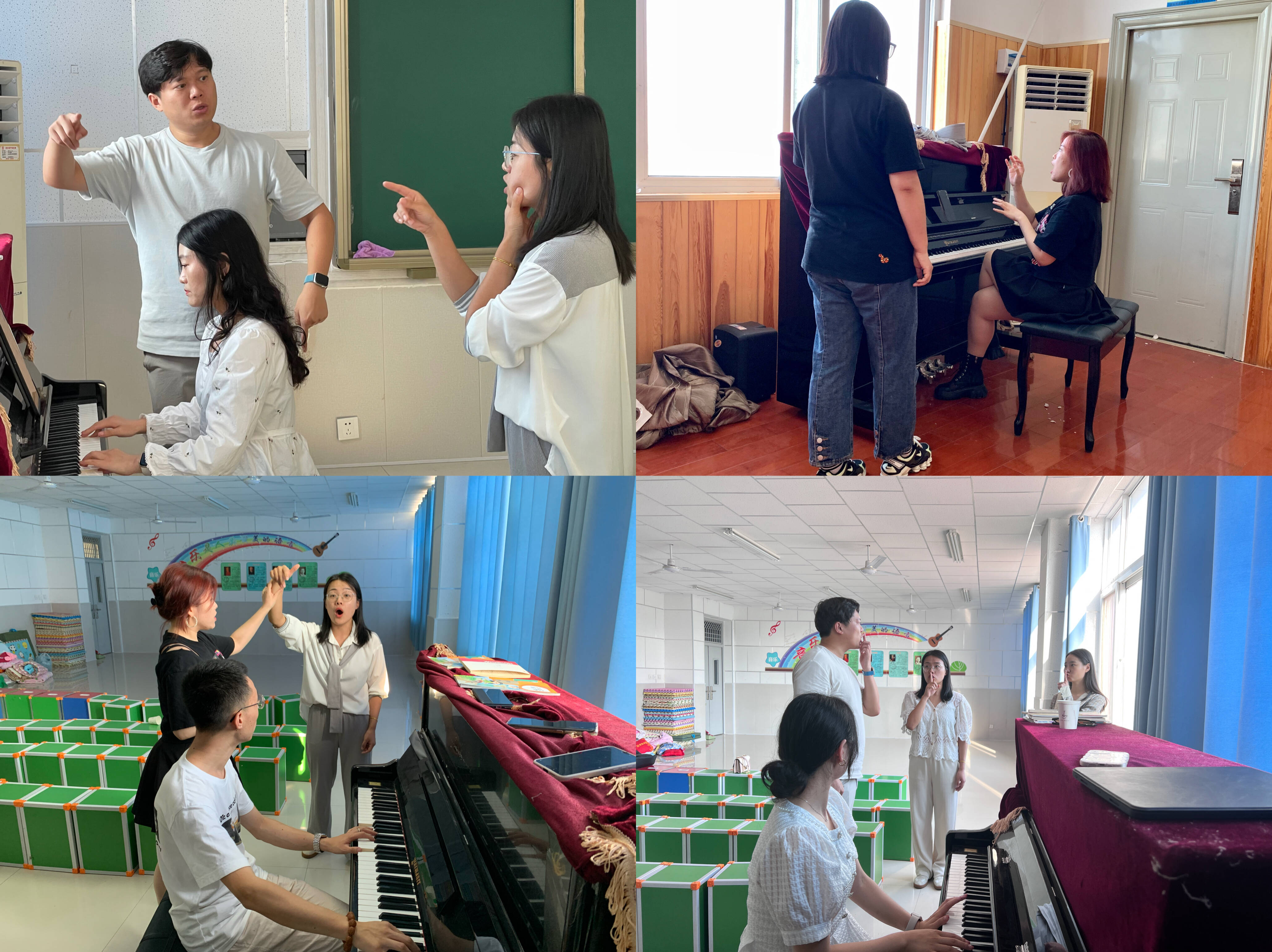 钢琴专任教师张利鑫与胡子钰老师,根据帮扶单位的需求对教师们的即兴伴奏进行系统的培训,从最简单的调式调性,到和弦进行,以及和弦编排等基础知识进行讲解,再结合具体歌曲的伴奏,通过示范教学等方法,对帮扶对象的钢琴伴奏能力进行专业化、规范化的指导。