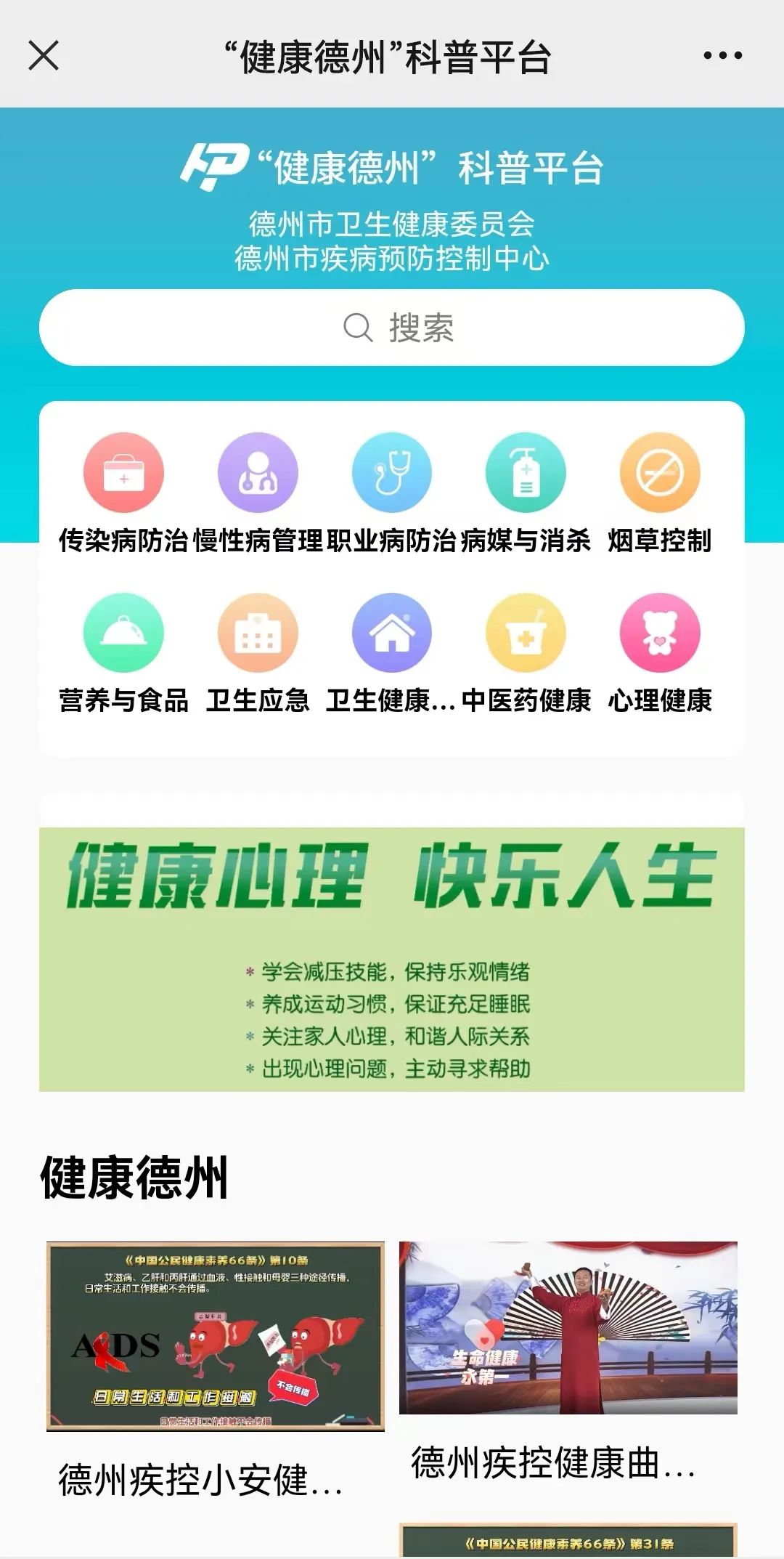 近日,由德州市卫生健康委员会与德州市疾病预防控制中心共同打造的“健康德州”科普平台手机端正式上线啦!