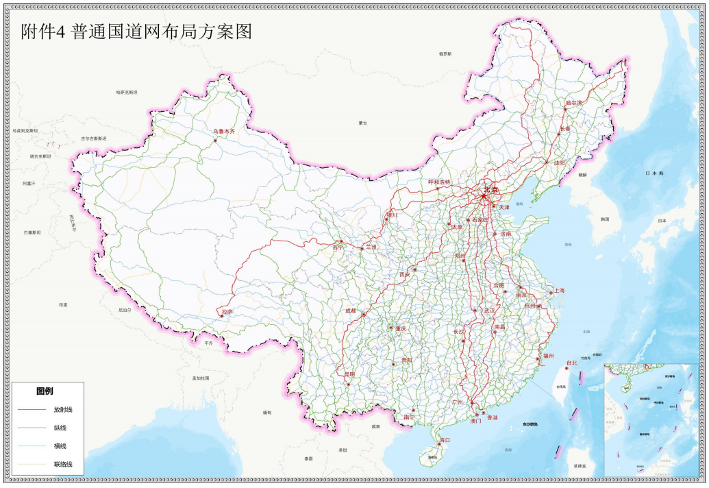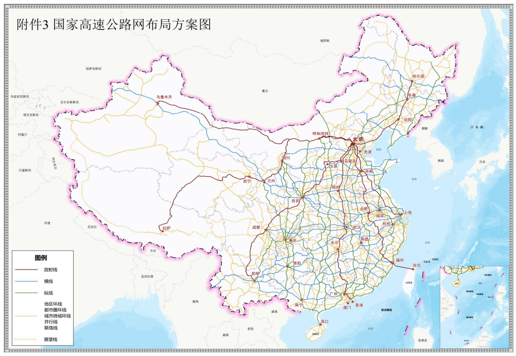 国家公路网是国家综合立体交通网基础和主骨架的重要组成部分,对经济社会发展具有重要的基础性和先导性作用,未来将加快构建现代化高质量国家公路网,通过畅通“大动脉”,完善“微循环”,国家公路网服务能力和运行效率得到大幅提高,将进一步促进产业链供应链畅通运转,更好发挥对产业发展的支撑作用,助力筑牢国民经济循环底盘。主要控制点:北京、廊坊、沧州、德州、济南、泰安、曲阜、徐州、蚌埠、合肥、铜陵、黄山、衢州、建瓯、福州、台北主要控制点:德州、聊城、范县、菏泽、巨野、永城、蒙城、舒城、祁门、婺源、德兴、上饶主要控制点: 长清、齐河、禹城、临邑、济阳、章丘、长清