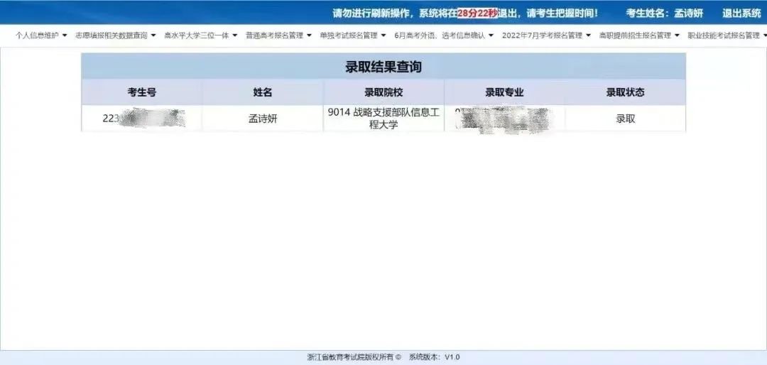 今天(15日)上午,浙江省教育考试网公布了2022年学生录取结果,烈士孟祥斌女儿孟诗妍被战略支援部队信息工程大学(原解放军信息工程大学)录取。恭喜孟诗妍,考入了父亲所就读的学校,圆了自己的梦想!