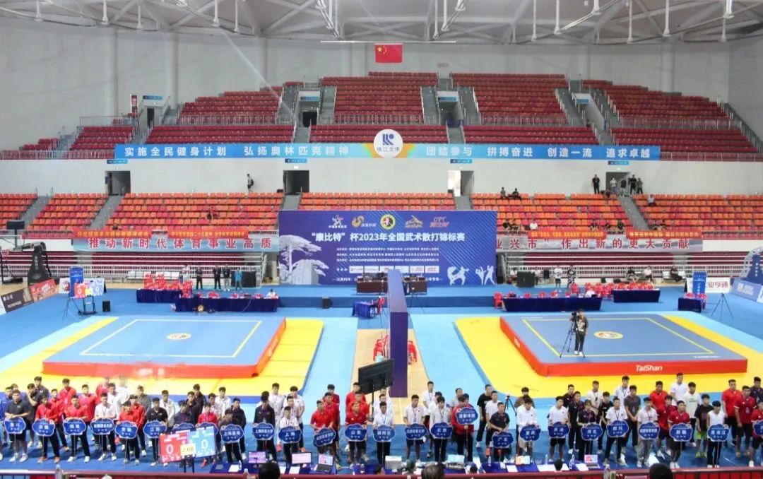 8月10日,2023年“康比特杯”全国武术散打锦标赛在枣庄市文体中心体育馆开幕,来自全国各省市的43支代表队伍,597名运动员将在为期11天的比赛中争夺21枚金牌。