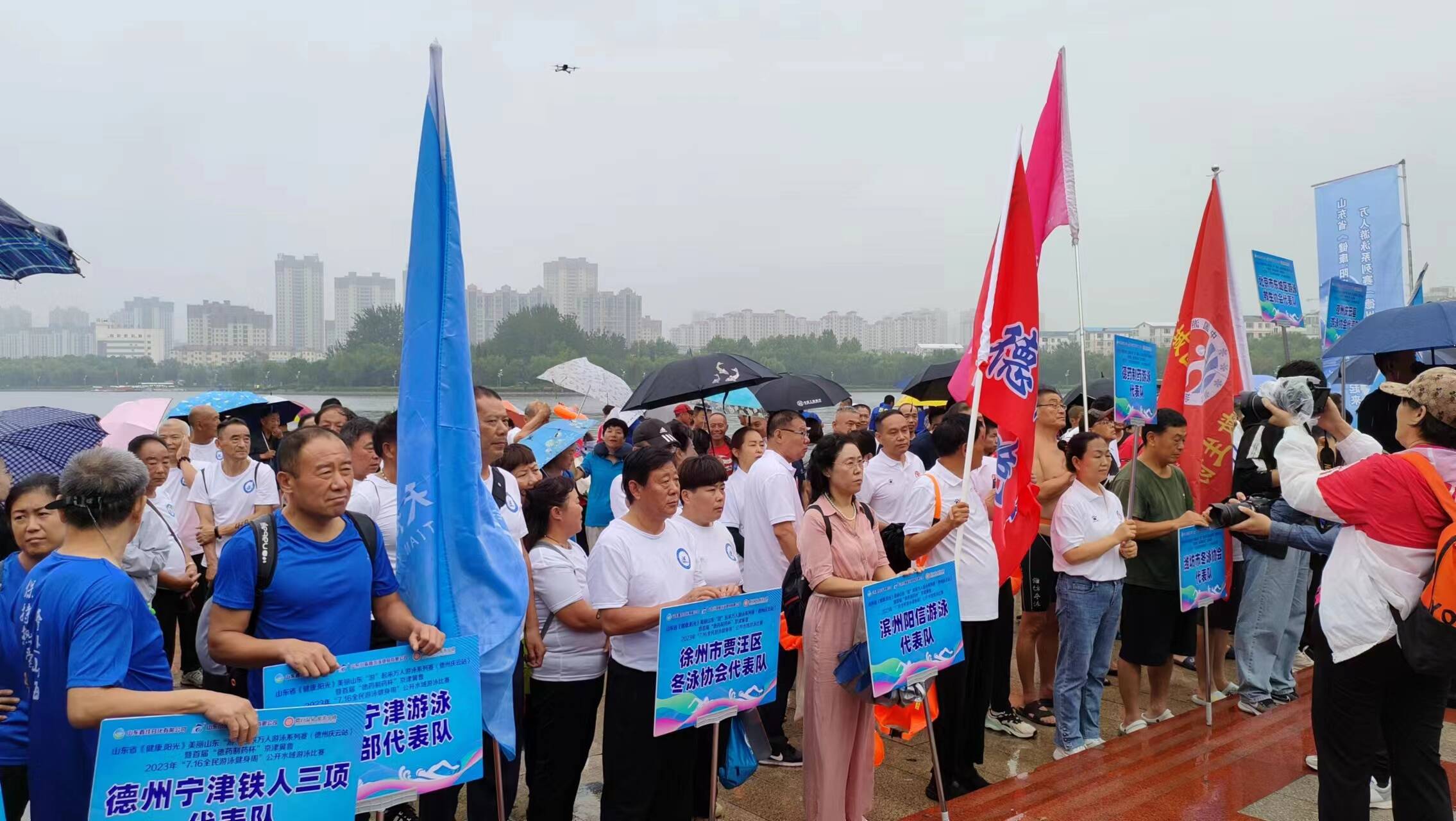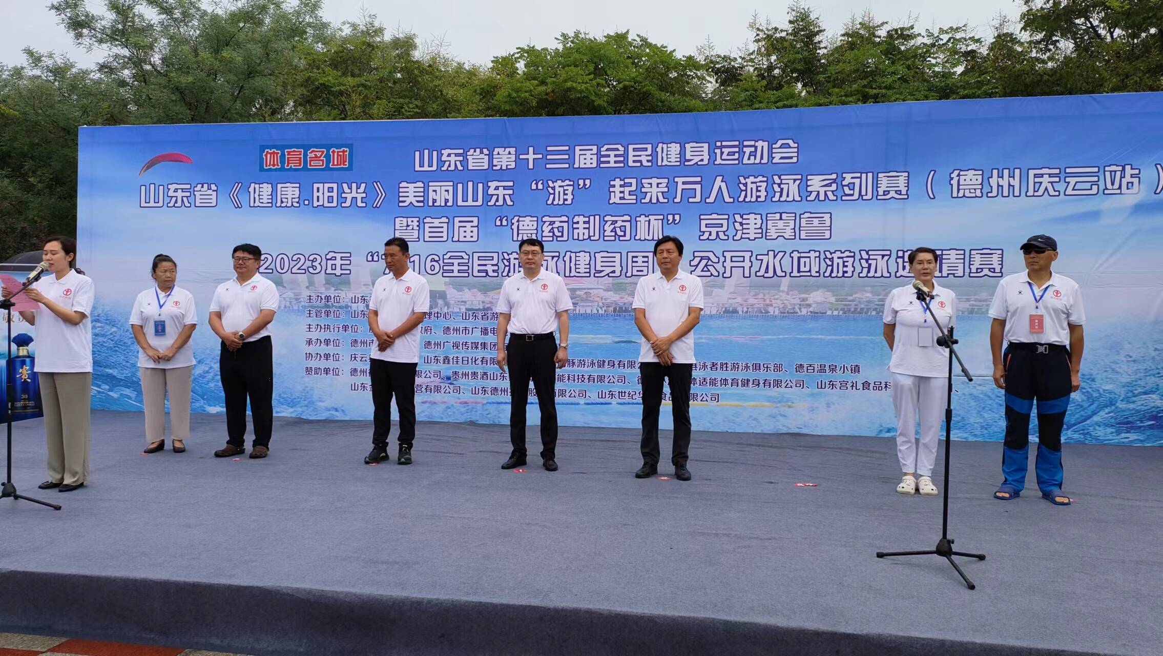 8月27日,山东省《健康·阳光》美丽山东“游”起来万人游泳系列赛(德州庆云站)暨首届“德药制药杯”京津冀鲁公开水域游泳邀请赛在庆云县北海公园举办。