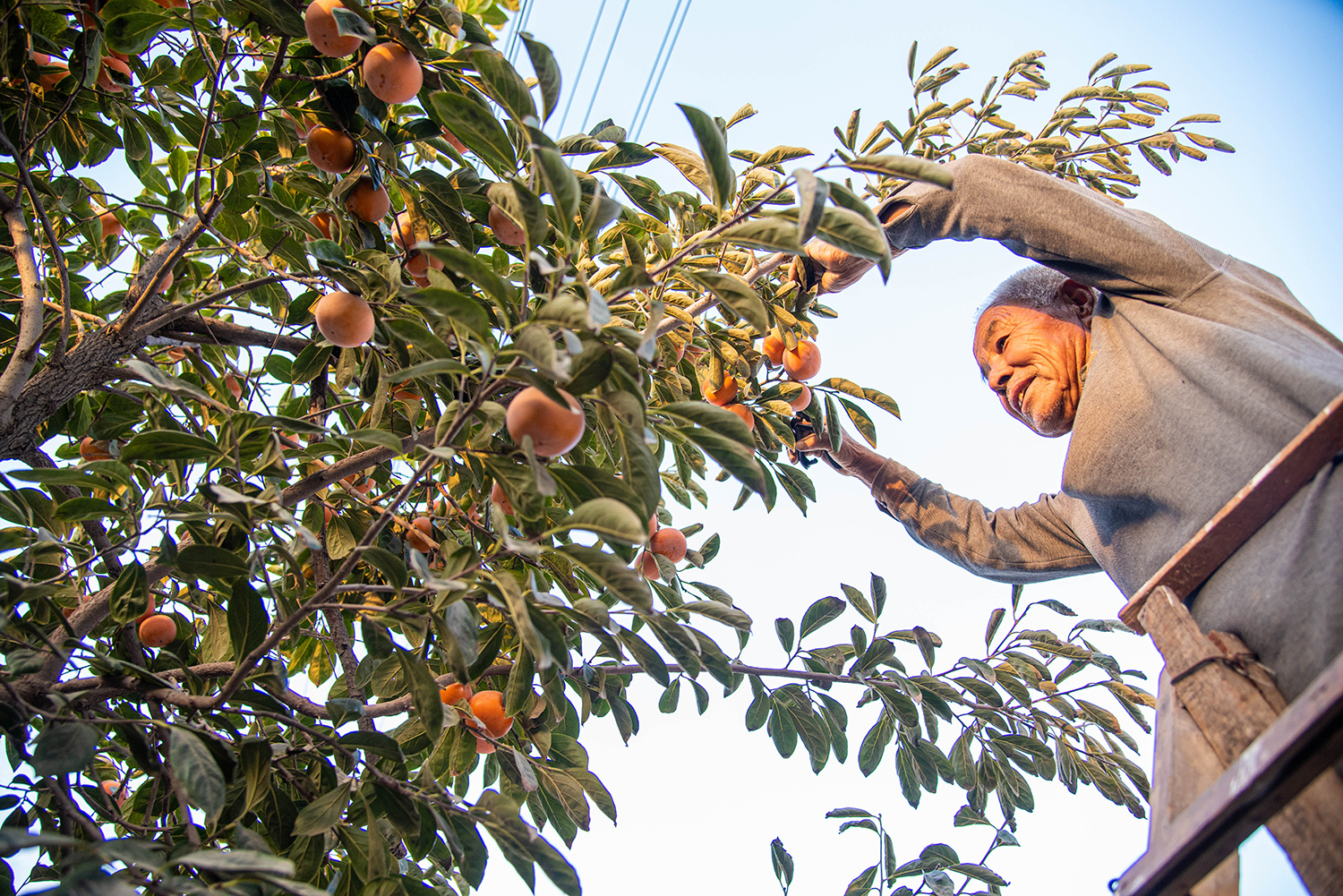 眼下正值农忙时节,农民们在田地里抢收、播种,动作快的农户们,可以空下手来,在屋后打牌、聊天,看见学步的孩童走来,站起身来,在柿树上挑拣熟透的果子递过去,甜蜜的柿子香气浓郁。经年流转,柿香不断,丰乐屯土地上始终是一派丰收景象。