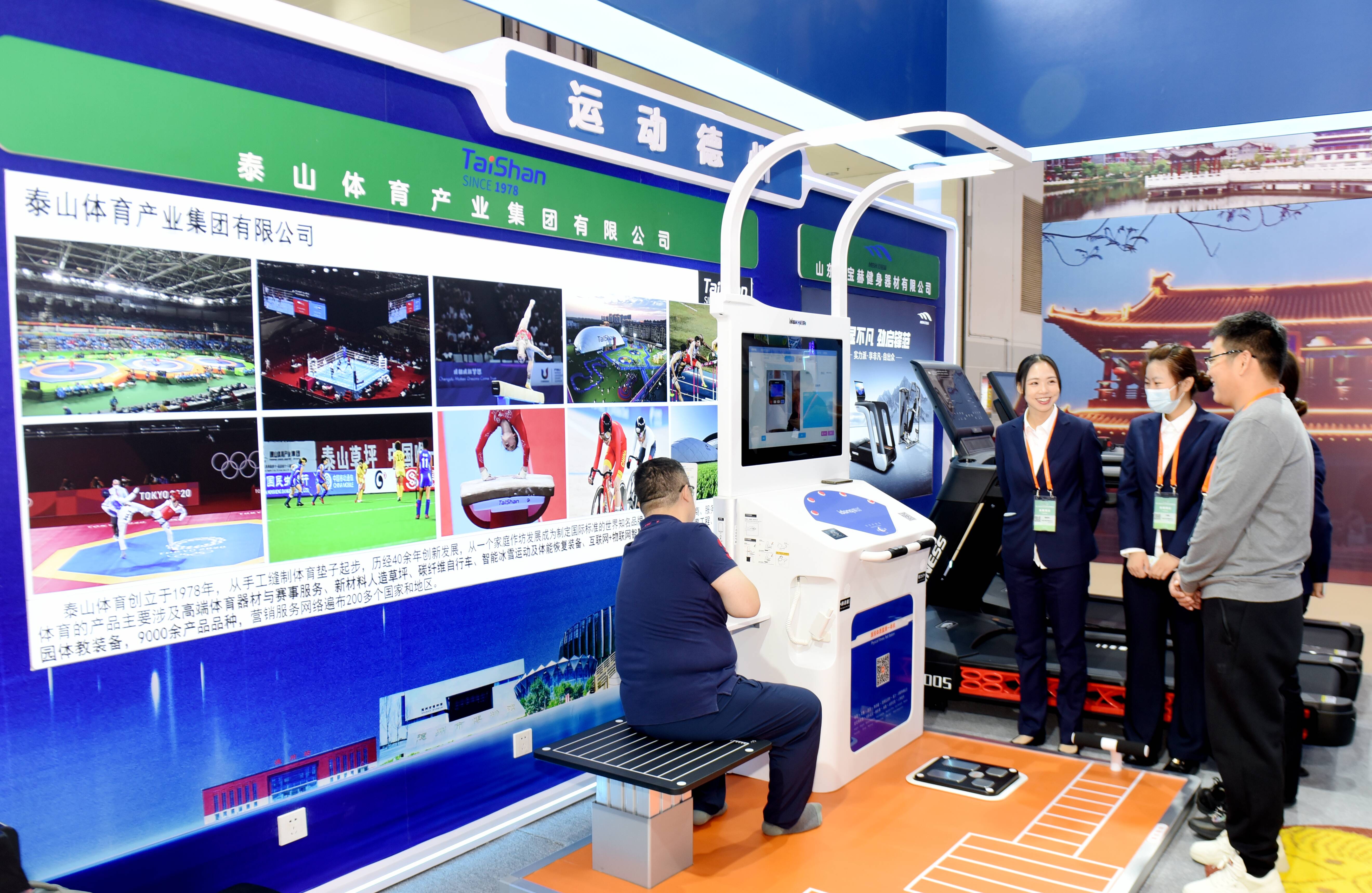 在泰山体育集团的展台前,摆放着科学健身体测一体机、碳纤维自行车、人造草坪等,吸引了参加展会的客商前来体验。“泰山集团把重要精力放在了亚太地区,前期,我们刚跟哈萨克斯坦就国家体育训练馆的建设达成了重要战略协议。”泰山体育产业集团有限公司副总裁徐培明说,参加展会是为了让更多人认识这些民用体育产品,希望把这些产品推向亚太地区,提高亚太地区人民的健身素质和能力。德州特展馆中,来自乐陵的参展企业数量最多,不仅有体育产业的企业,还有调味品产业和枣产业相关企业。“此次展会对推进中小企业高水平开放合作,提升产业链、供应链的稳定性和竞争力,深化合作起到了积极推动作用。”乐陵市工业和信息化局局长杨宗明说。