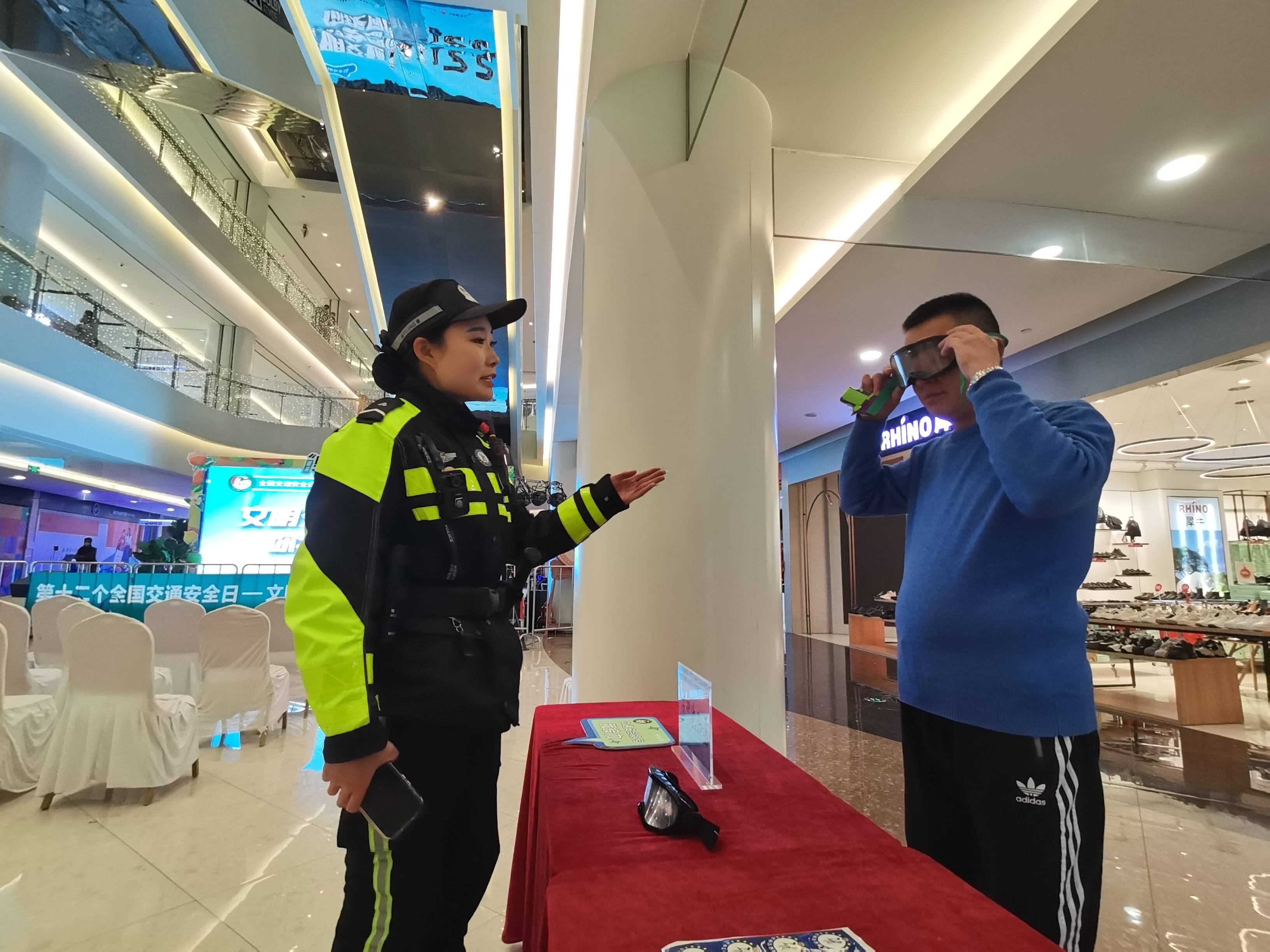 在活动现场,大队设置了交通事故警示区、酒醉驾模拟体验区、交通安全知识学习区、互动游戏体验区等四个区域。其中,交通标志翻翻看、“圈住安全”套圈圈游戏、交通安全大转盘游戏等互动游戏吸引了广大市民踊跃参与。孩子操作、家长答题,合力赢取奖品;现场体验了解酒后状态,明白酒醉驾的危害;转盘答题抽奖,加深安全知识学习效果;本地警示教育视频循环播放,让群众坐下来,看进去,提升安全意识。