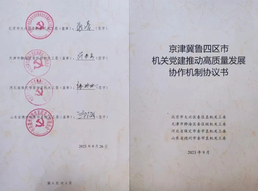 9月26日,与北京市大兴区、天津市静海区、河北省保定市等区市,共同签订协议书。
