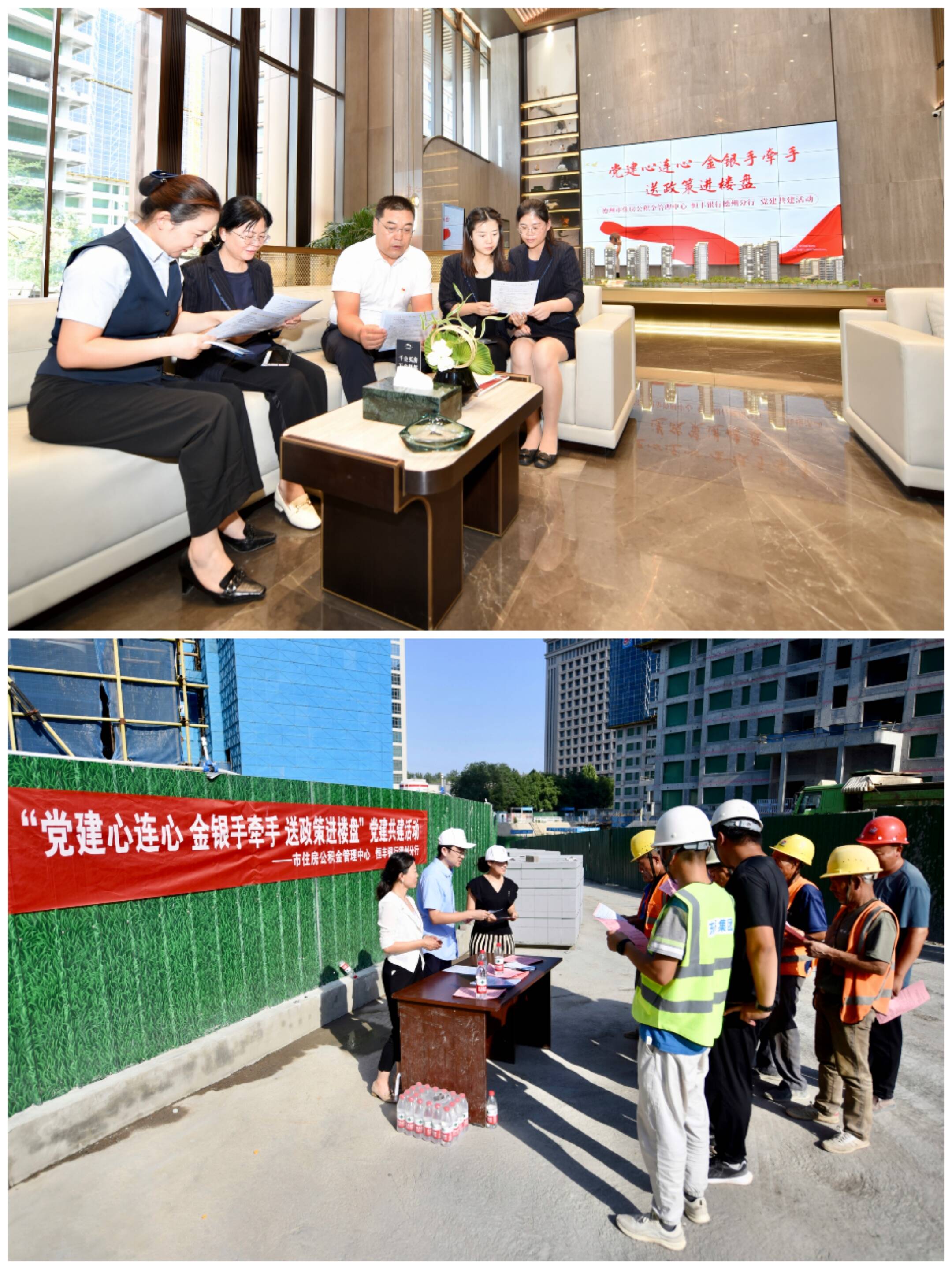 大略网·奏嘛新闻6月28日讯 为进一步加强基层党组织凝聚力,提高公积金中心便民利企服务水平,推动党建与业务深度融合,6月27日,德州市住房公积金管理中心机关党支部联合恒丰银行,开展“党建心连心 金银手牵手 送政策进楼盘”党建共建活动。