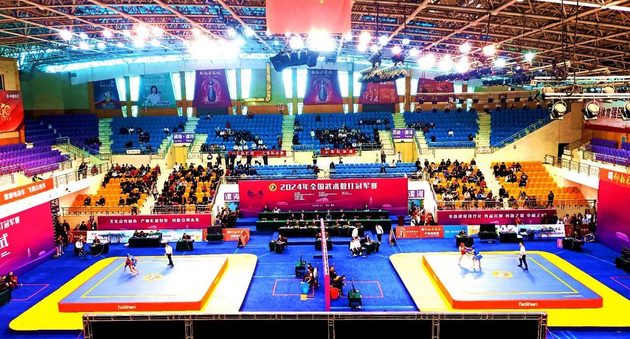10月24日,全国武术散打冠军赛在河南省漯河体育中心体育馆开赛,来自国内顶级40支代表队的近400名武术散打健儿汇聚漯河,给观众带来一场展现武术精髓的盛宴。泰山体育成为本届赛事场地器材、训练器材供应商与服务商。