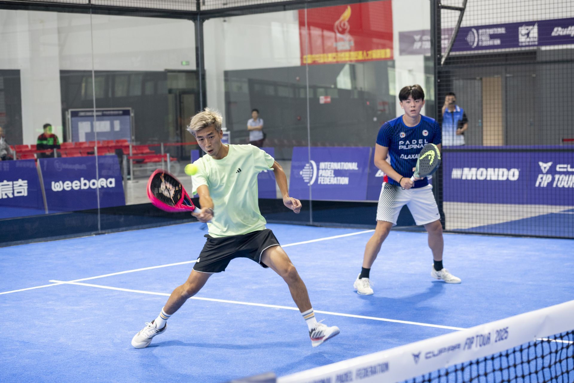在上午的焦点对决中,跨国组合——中国选手张博厚与西班牙名将Joel Olivera迎战日本/中国香港选手的组合。双方在赛场展开激烈角逐,中国 / 西班牙组合凭借默契配合与强势的网前截击压制,以 2-0(6-1/6-1)的比分直落两盘,横扫对手斩获胜利。张博厚说:“我不是第一次来德州了,往年办CPT我也经常来。每年来到这都感觉这个办赛氛围非常好,而且场地非常的专业。赛事保障也很好,比赛用水、班车、医疗团队都很齐备专业,所以很开心能够来这里参赛。明天不出意外我们要打世界排39的一号种子,我们会尽全力。”
