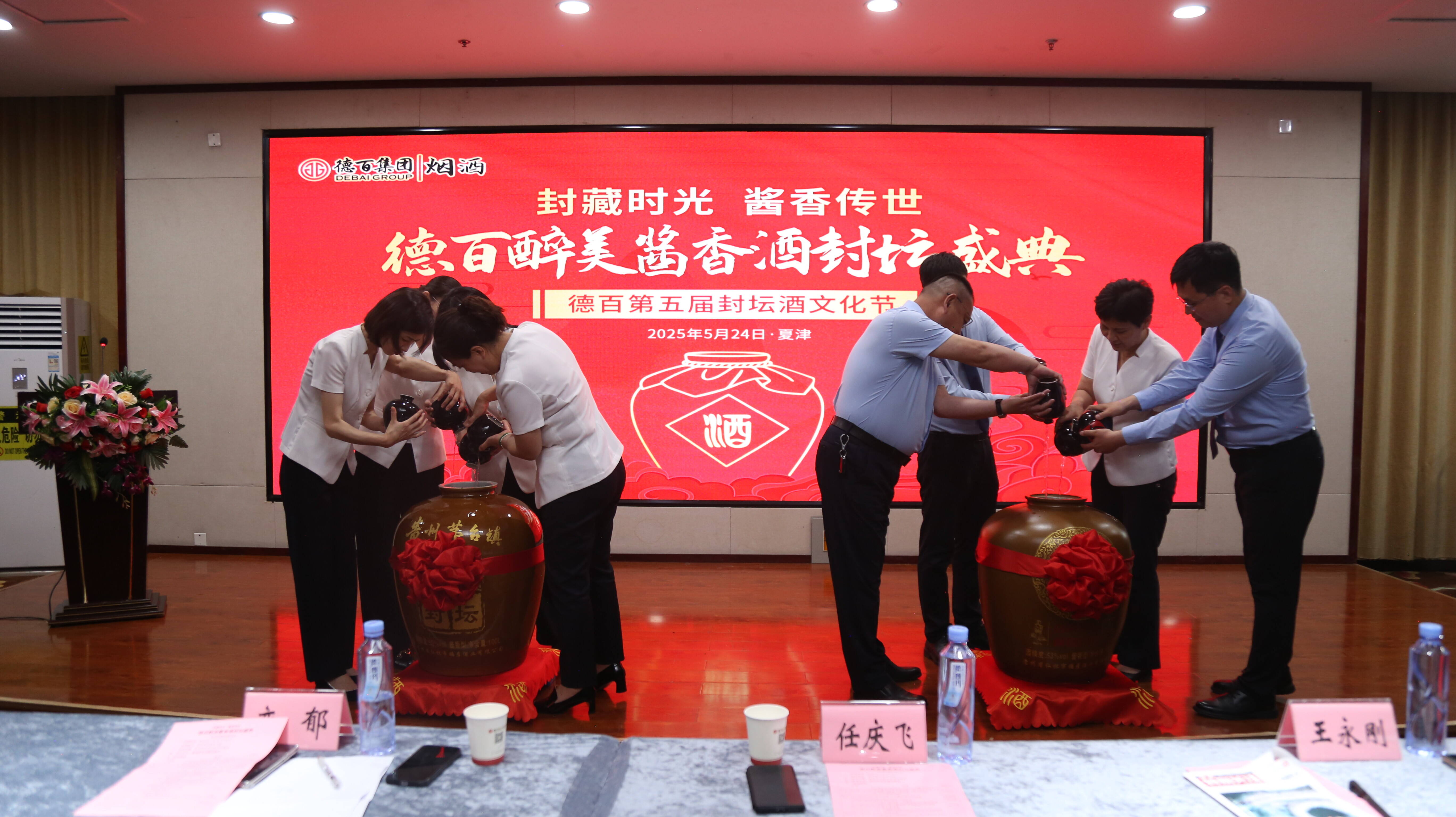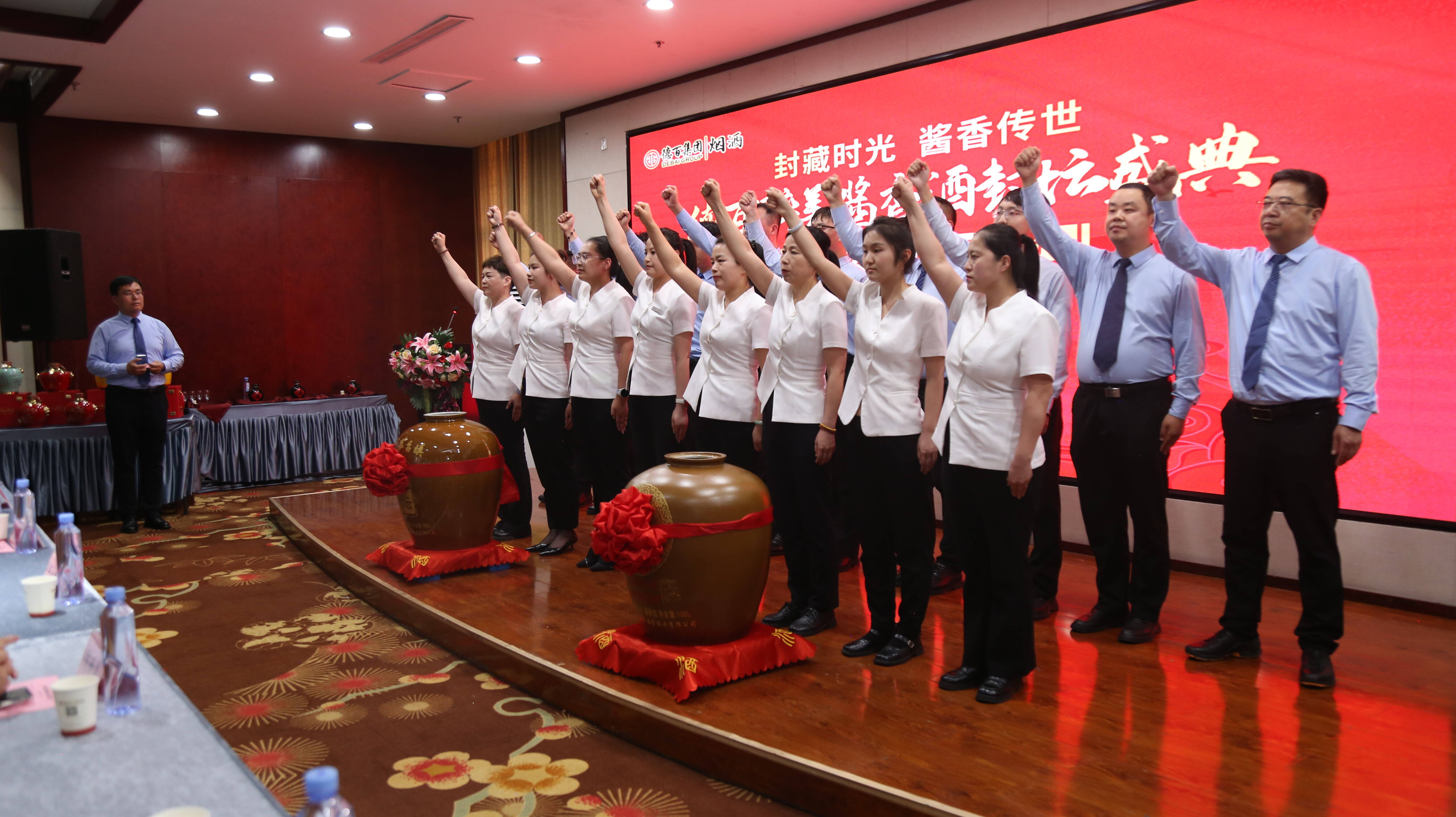 大略网·奏嘛新闻5月25日讯 封藏时光 ,酱香传世 ! 5月24日,德百集团第五届醉美酱香酒封坛盛典于夏津德百温泉小镇盛大启幕。德百集团副总经理栾郁、任庆飞;德百集团总经理助理冯涛,总经理助理、澳德乐奥莱总经理王永刚;德百家居广场总经理董文华;德百批发城总经理陈世英;德百温泉旅游小镇总经理张春雨;德百烟酒公司总经理刘文涛等参加活动。