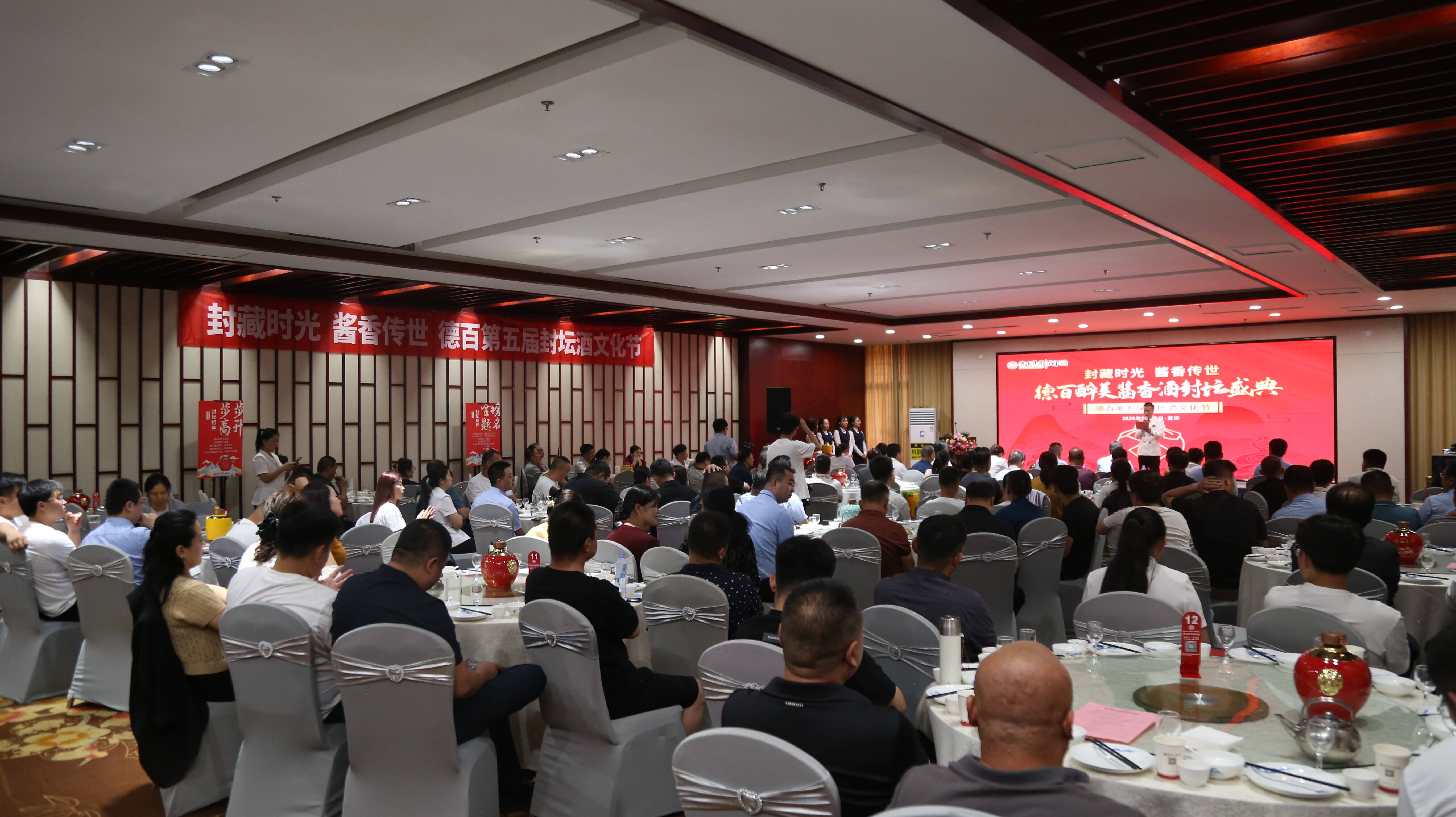 活动现场,精彩纷呈的文艺表演与专业的酿造流程讲解相得益彰。从精挑细选的原料选取到匠心独运的制曲工序,从漫长精细的发酵过程到岁月沉淀的陈酿环节,全方位展现了德百醉美酱香酒独特的酿造工艺。