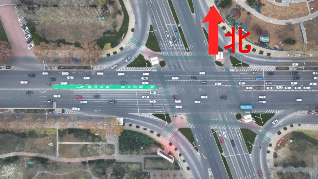 注:每日7:00-9:00东西方向、南北方向信号灯放行方式为先放行左转后放行直行。其他时段潮汐车道禁止驶入,信号灯放行方式为先放行直行后放行左转。