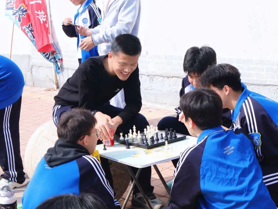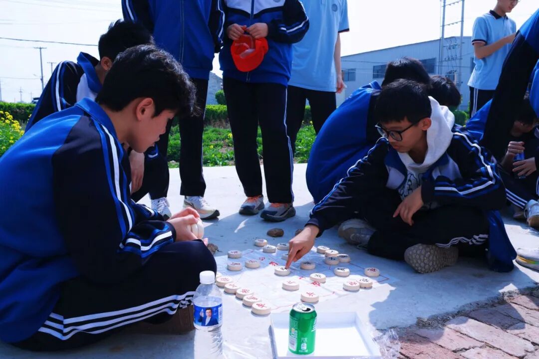 有的同学席地而坐,对弈象棋