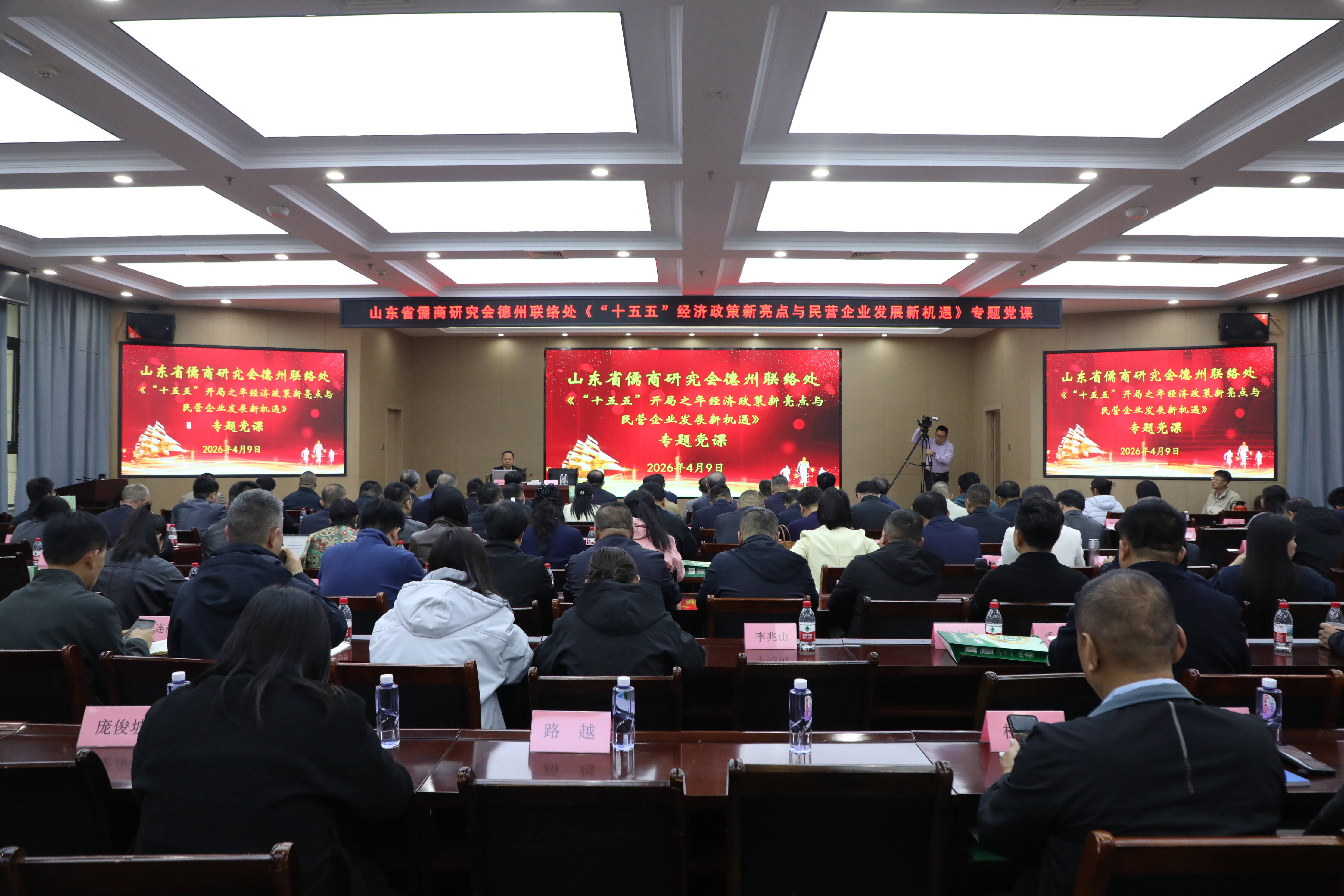 4月9日下午,山东省儒商研究会德州联络处在天元大厦举办《“十五五”开局之年经济政策新亮点与民营企业发展新机遇》专题党课,联络处工作班子、顾问、各工委会会员单位共120余人参加活动,山东省儒商研究会德州联络处书记麻然华主持。