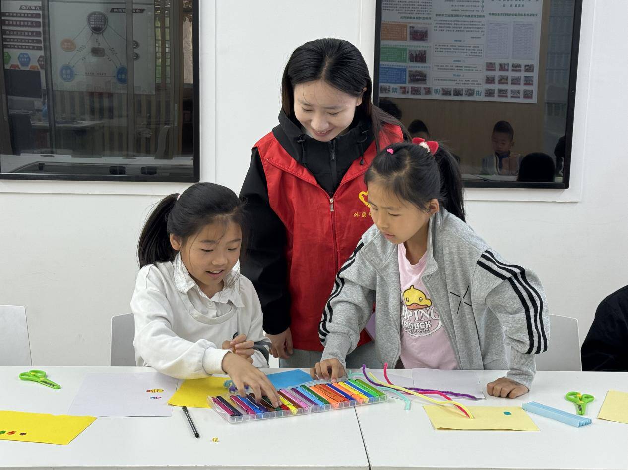 活动中,大学生志愿者以生动易懂的语言,为青少年们带来了一场精彩的世界地球日科普宣讲,让青少年们了解到地球日设立的初衷是唤起人类爱护地球、保护家园的意识,推动环境治理与生态保护。随后,带领青少年们开展“爱护海洋”主题卡纸手工制作,将环保理念融入实践操作中。志愿者们提前准备好彩色卡纸、剪刀、胶水、彩笔等材料,耐心讲解制作技巧,引导青少年们发挥想象力和创造力,用卡纸剪出小鱼、珊瑚、海龟等海洋生物,描绘出自己心中的蓝色海洋世界。