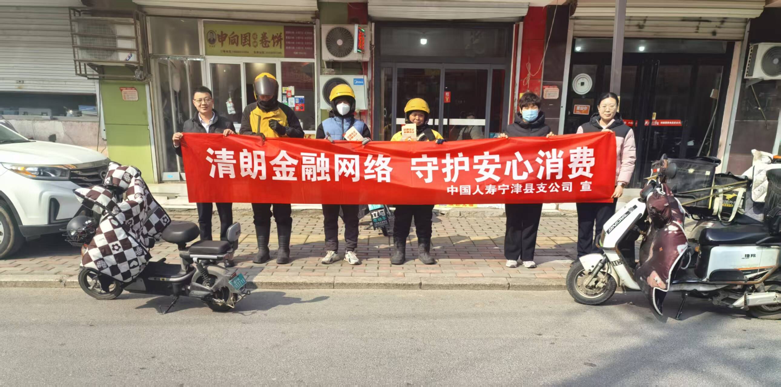 在为外卖员群体精准化宣传金融消保知识的基础上,中国人寿宁津县支公司进一步扩大宣传群体,开展了全县3.15集中宣传活动,通过进商圈、向过往群众发放宣传彩页、互动问答等形式,重点讲解防范养老诈骗、非法集资,筑牢风险防控防线,推广便捷理赔服务。