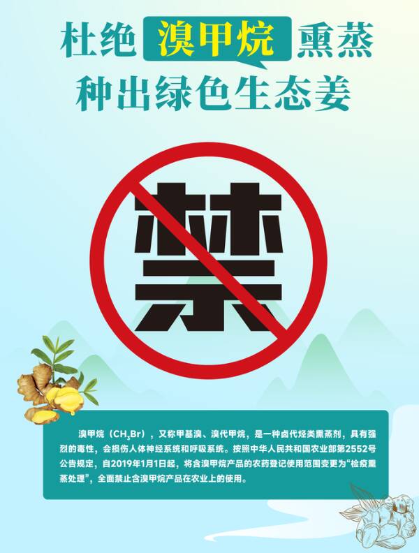 不用溴甲烷,姜菜更香甜;保护臭氧层,子孙更健康!