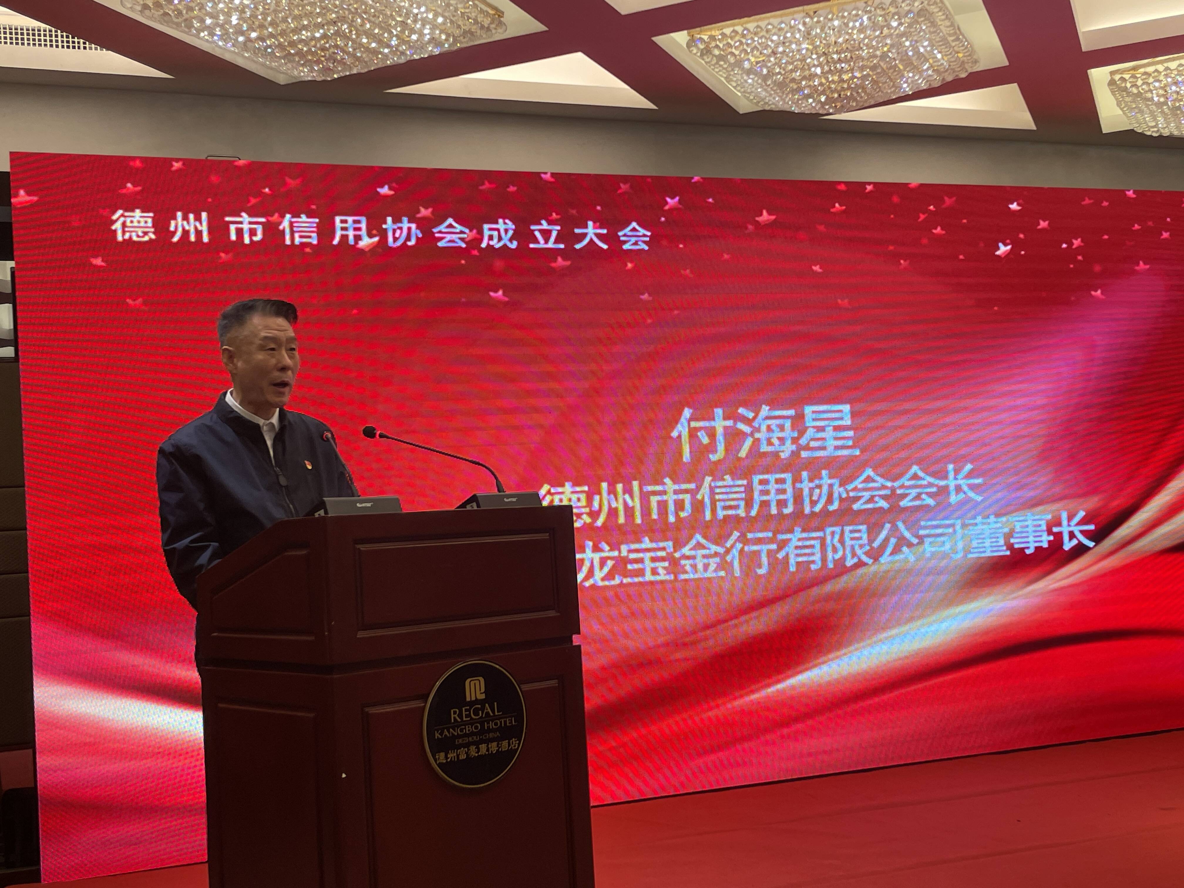 会上,审议了《德州市信用协会章程》与《德州市信用协会会费收取标准》,选举了德州市信用协会会长、监事、副会长、秘书长、副秘书长、理事。德州市龙宝金行有限公司董事长付海星当选德州市信用协会会长。
