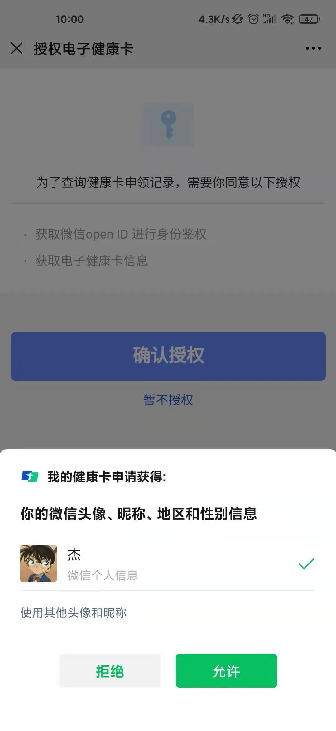 如您之前申领过健康通行码,授权之后可通过此功能快速申领电子健康卡,推荐用此功能实现办卡。