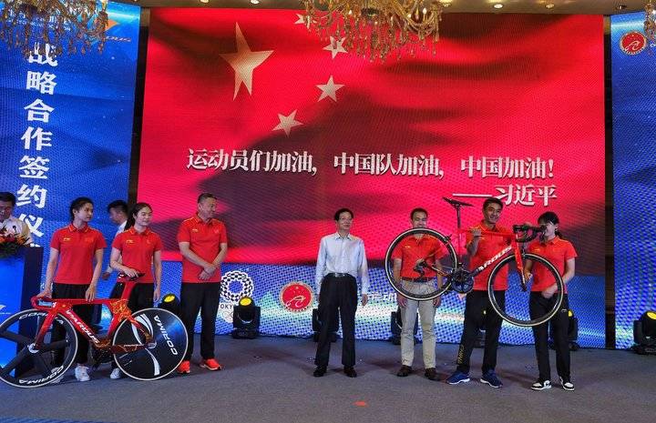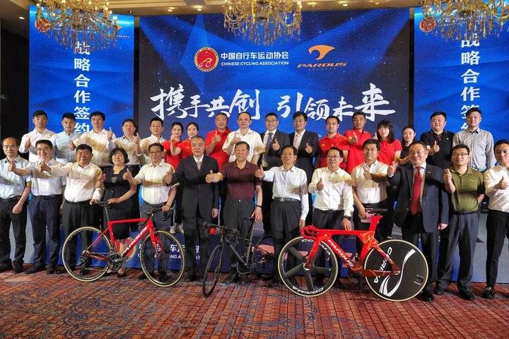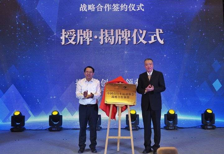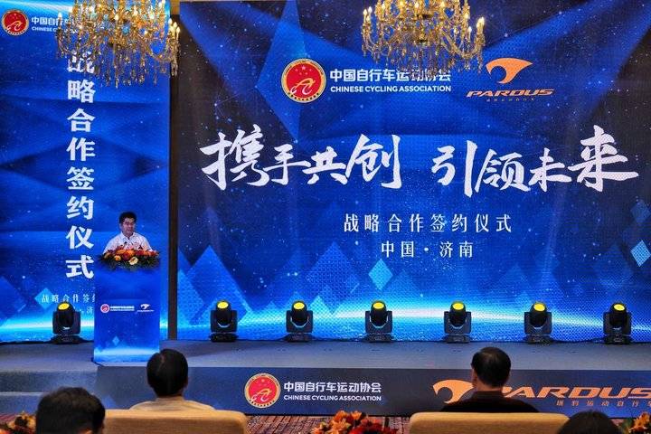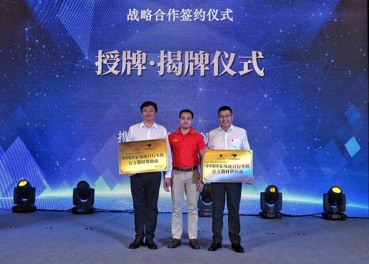 仪式上,中国自行车运动协会与泰山瑞豹复合材料公司签订战略合作协议,标志着泰山瑞豹正式成为中国国家队公路自行车、场地自行车这两个项目的器材赞助商和器材供应商。