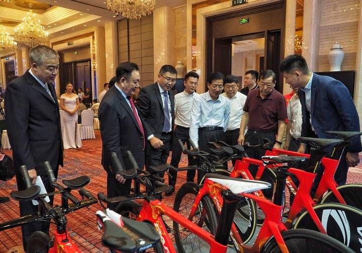 本次活动中最令人瞩目的一个环节是中国国家公路自行车队、场地自行车队的奥运战车交车仪式,山东省副省长孙继业将泰山瑞豹打造的奥运战车交付给中国国家公路自行车队、场地自行车队运动员和教练员,仪式庄严而热烈。这些由我国自主研发生产的PARDUS瑞豹自行车将陪伴我国的奥运健儿出征东京、备战巴黎。加上之前签约合作的中国国家铁人三项队,泰山瑞豹(PARDUS)在今年东京奥运会上共服务中国国家队三个自行车项目。