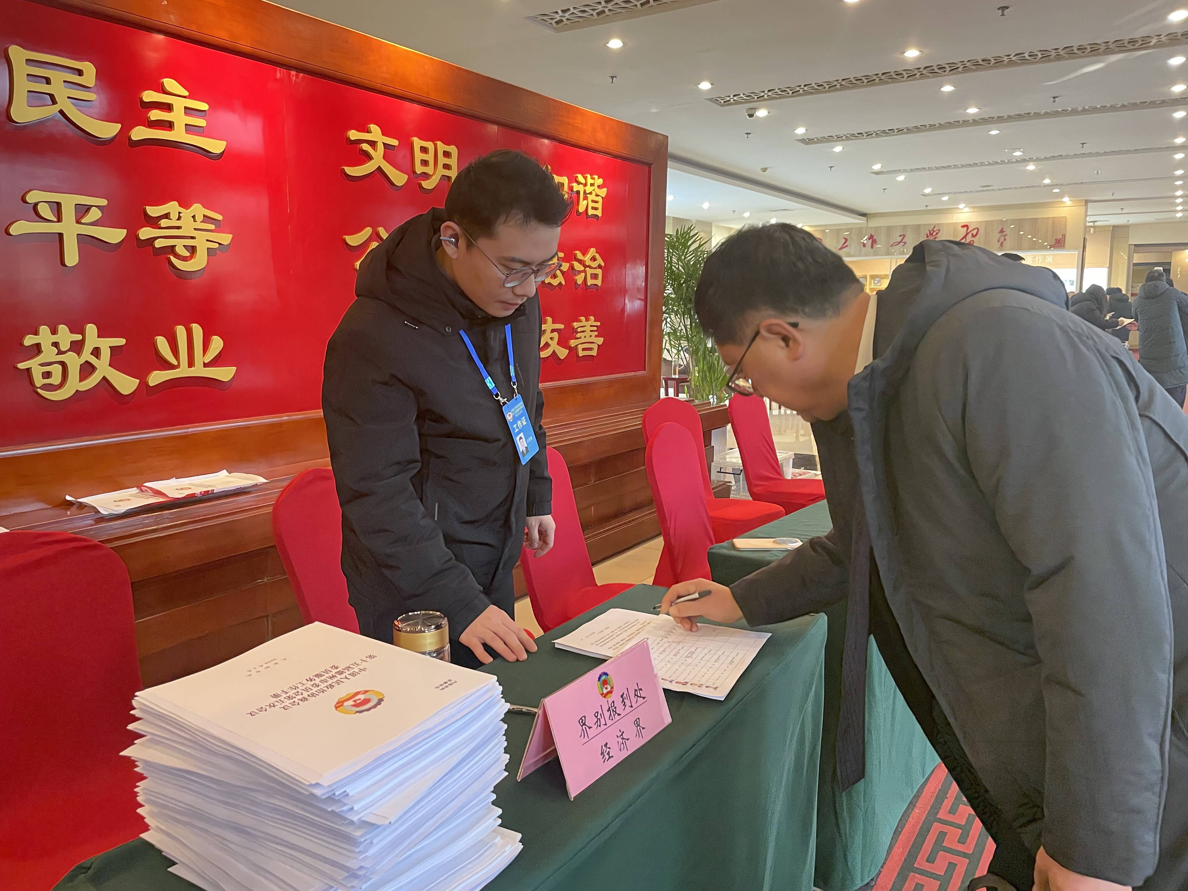 在工作人员的指引下,政协委员们有条不紊地完成信息核对、登记签到、领取会议资料等手续,现场秩序井然,迅速高效。