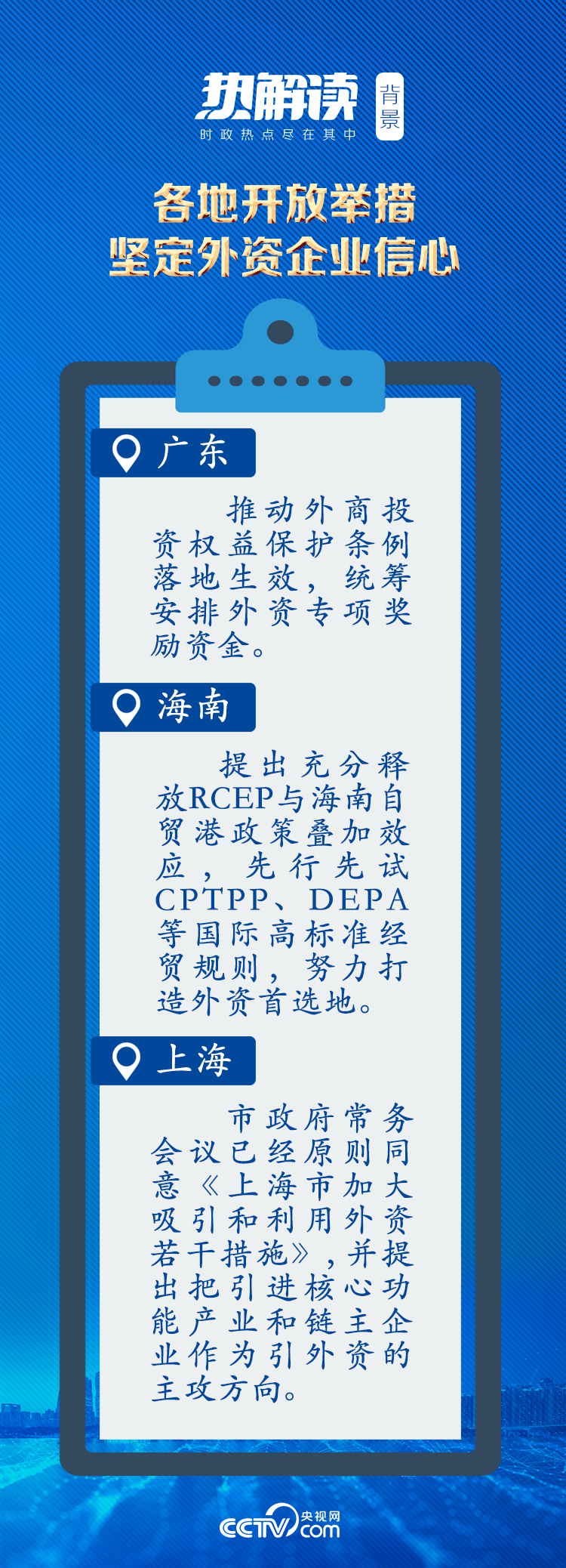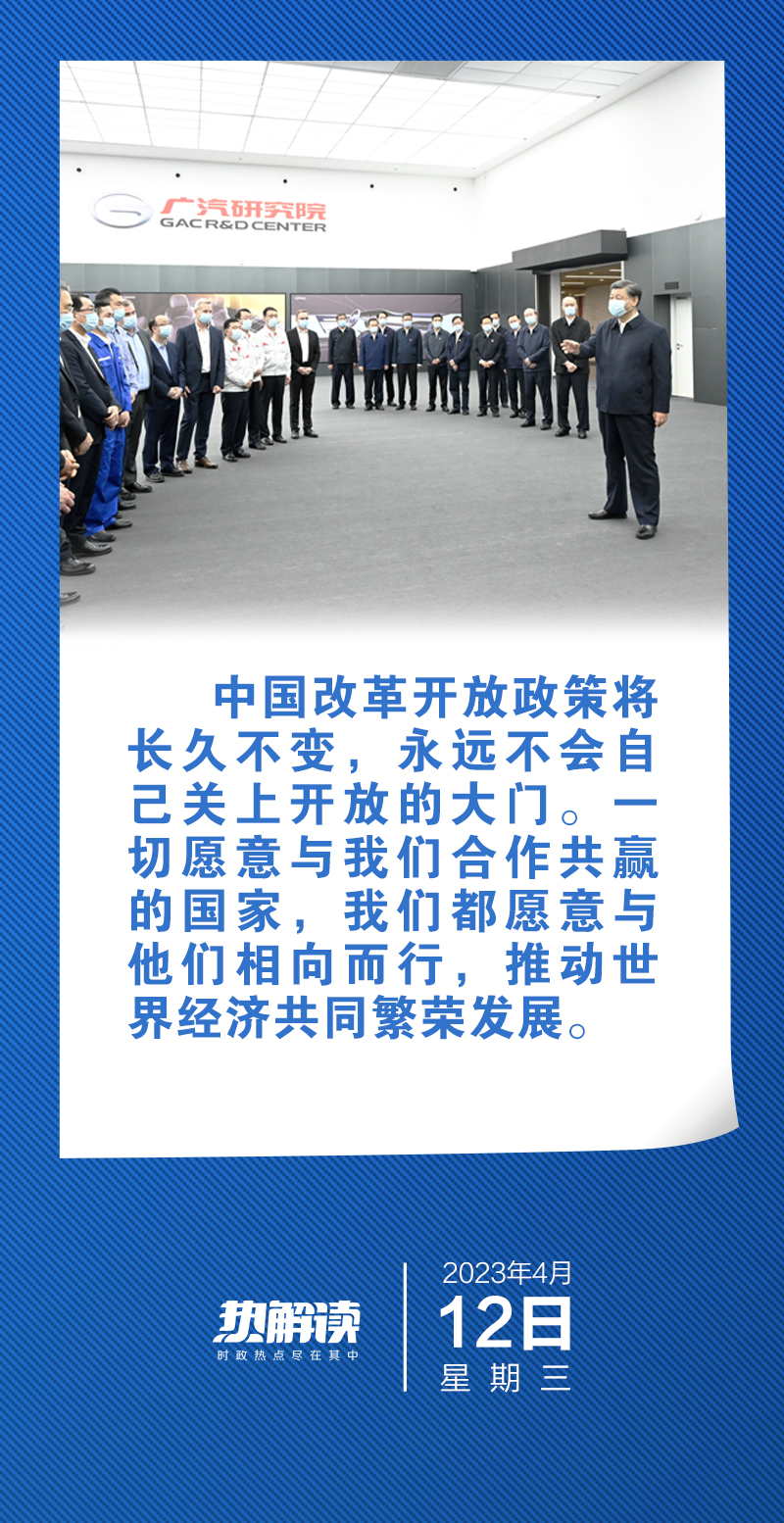总书记在此次考察中指出,在全球经济增长乏力情况下,中国加快构建新发展格局,加强营商环境建设,市场优势会更加明显。希望外国投资者抓住机遇,到中国来,到广东来,到粤港澳大湾区来,深耕中国市场,创造企业发展新辉煌。