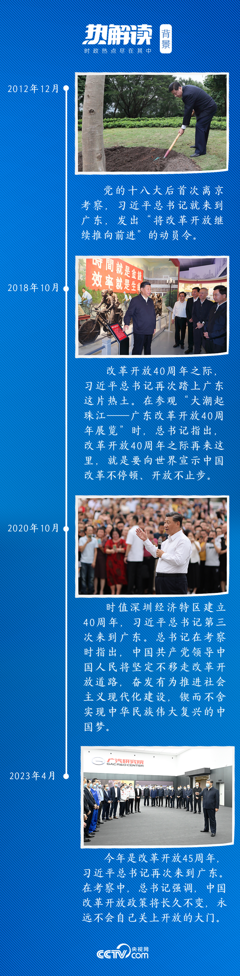 改革开放是广东最鲜明特征。党的十八大以来,习近平总书记四次到广东考察,“改革开放”每次都是考察的关键词。