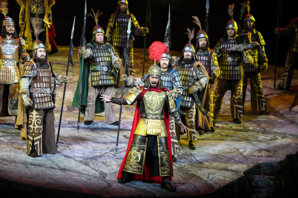 2018年6月7日,中央歌剧院原创民族歌剧《玛纳斯》在北京天桥艺术中心上演。新华社记者 郑焕松 摄