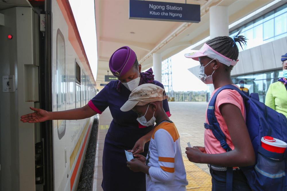 △2022年3月25日,乘客在肯尼亚蒙内铁路恩贡站排队上车。