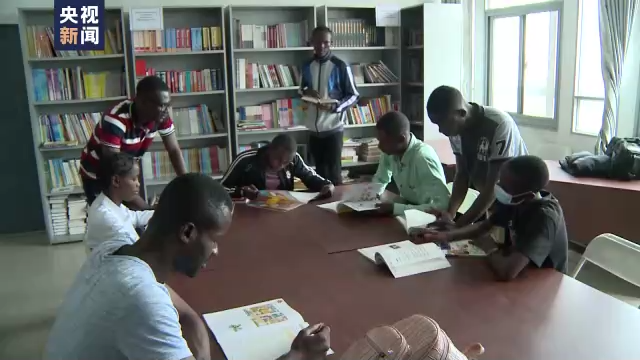 △汉语爱好者在恩古瓦比大学图书馆中国馆里学习。