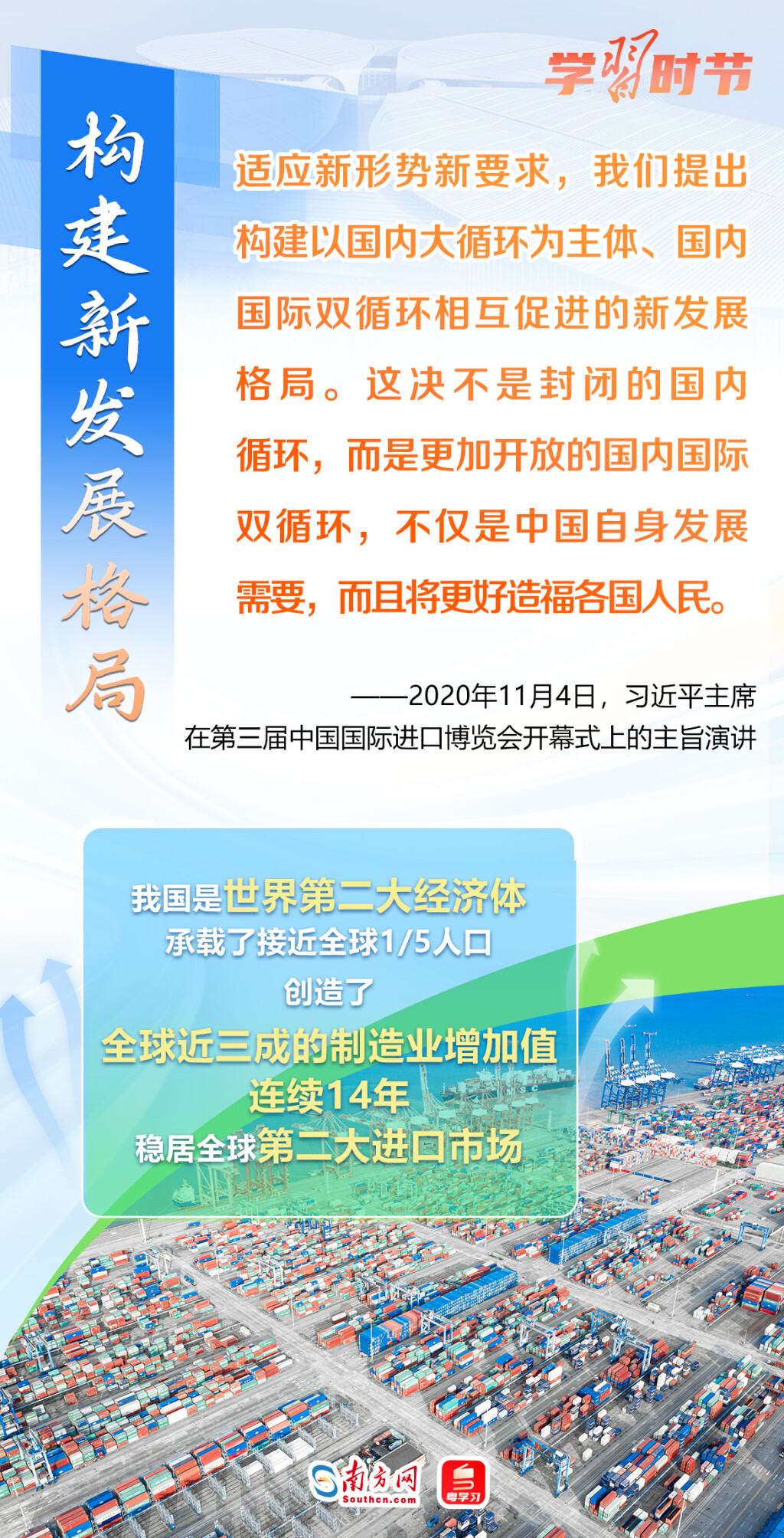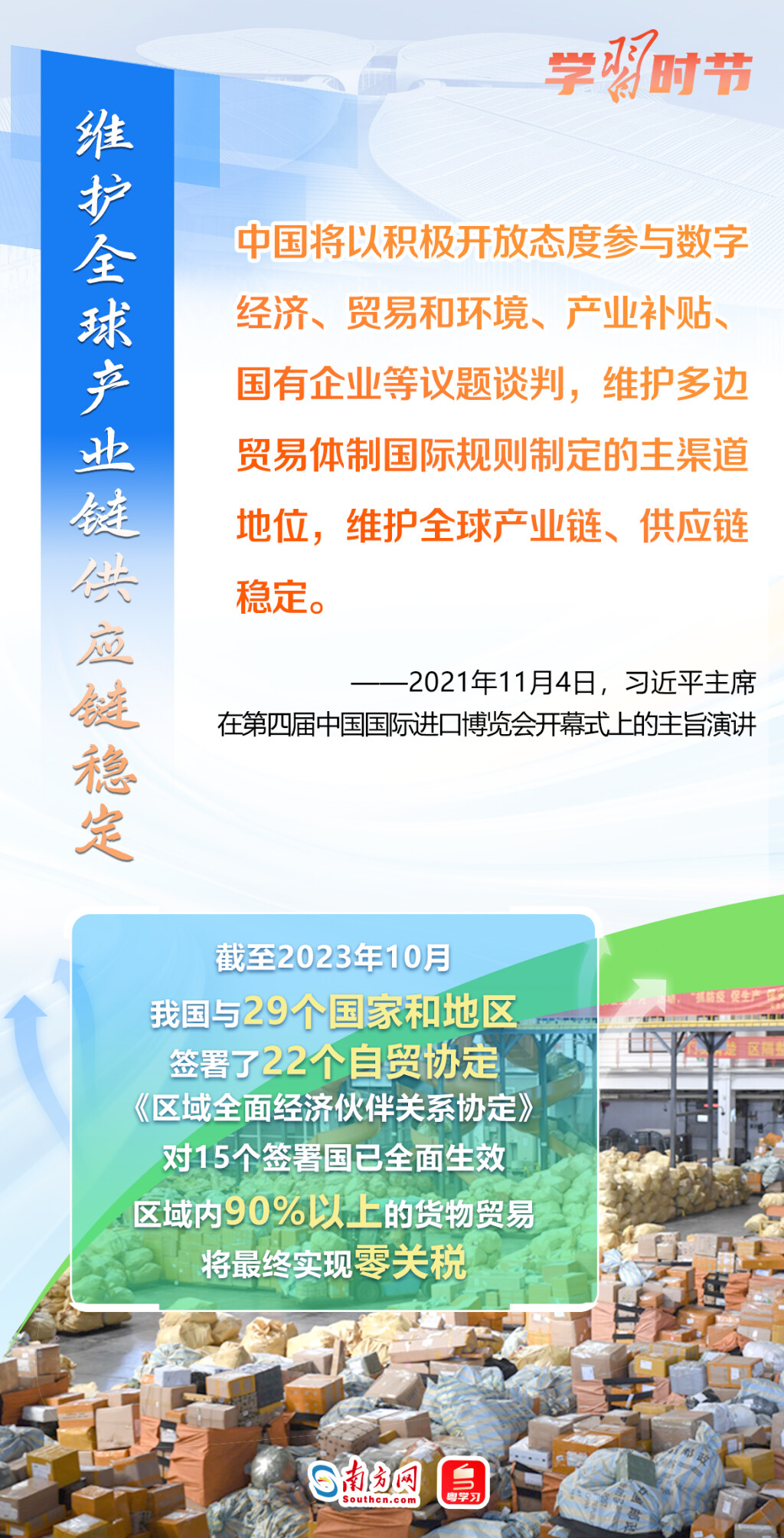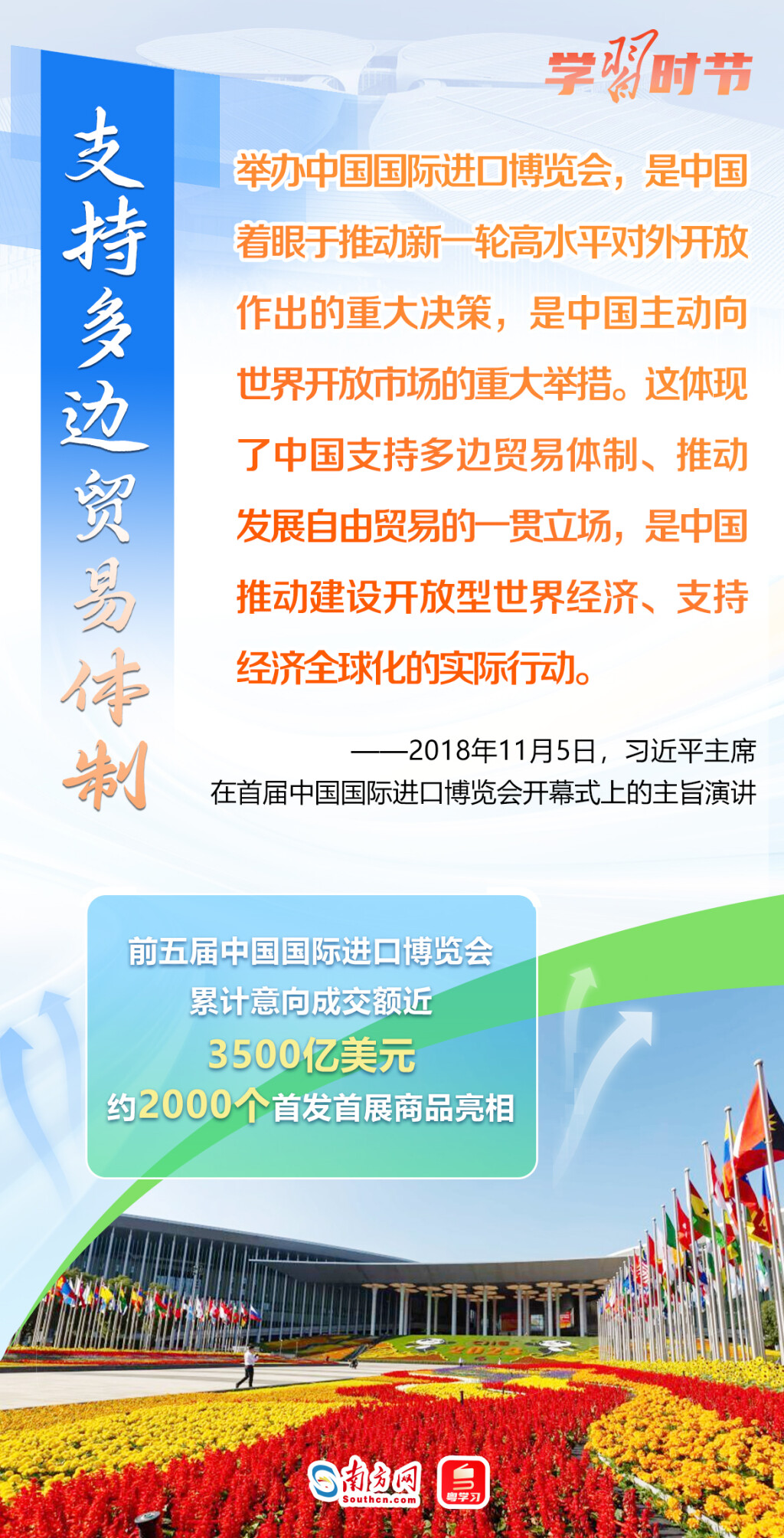 11月5日至10日,第六届中国国际进口博览会将在上海举行。这个由习近平主席亲自谋划、亲自部署、亲自推动的世界上首个以进口为主题的国家级展会,目前已成为举世瞩目的贸易盛会、开放合作的重要平台、全球共享的国际公共产品。第六届进博会举行在即,让我们通过一组海报,重温习近平主席在过去五届进博会上的重要讲话,深刻认识高水平对外开放的时代意义与关键作用。
