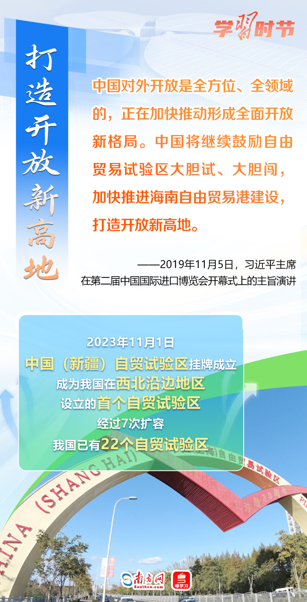 从推动共建“一带一路”高质量发展,到建设自由贸易试验区和海南自由贸易港,再到连续6年举办中国国际进口博览会……党的十八大以来,在以习近平同志为核心的党中央坚强领导下,中国坚定不移推进高水平对外开放,坚持以开放促改革、促发展、促创新,推动建设开放型世界经济,开拓了广阔发展空间,实现了与世界各国互利共赢。