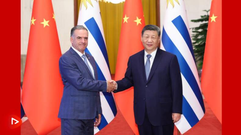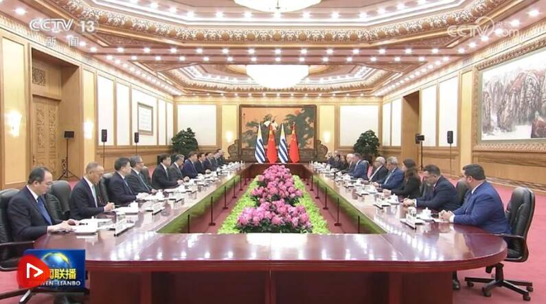 习近平指出,当今世界正处于百年未有之大变局,国际形势变乱交织,单边霸凌愈演愈烈,中方支持乌拉圭接任“77国集团和中国”轮值主席国,愿与乌方加强全球南方团结协作,共同推进平等有序的世界多极化、普惠包容的经济全球化,携手并进、共谋发展,为构建人类命运共同体作出更大贡献。中方始终重视中拉关系,支持拉美和加勒比国家维护自身主权、安全、发展利益,支持乌拉圭接任拉美和加勒比国家共同体以及南方共同市场轮值主席国,愿同乌方和地区国家推动共建中拉命运共同体走深走实。