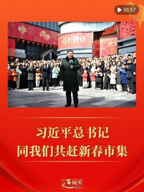习近平总书记同人民群众共赶市集、共迎新春,是年节里最温暖的图景。总书记走到百姓中间,送上真挚的新春祝福:“在农历马年龙马精神、身体健康、事业有成、阖家幸福!”