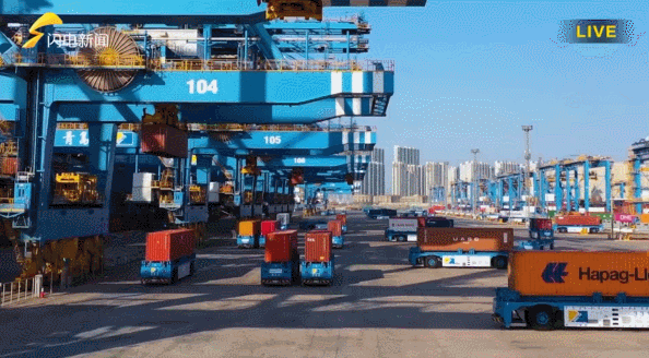 繁忙的青岛港自动化码头↑