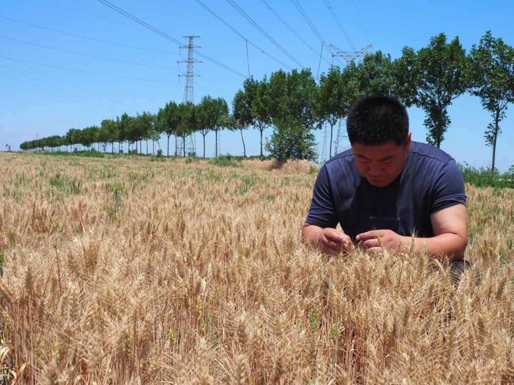 在山东省东营市垦利区黄河口镇义和村,在含盐量3.65‰的土地上,农民王效海种植的小麦平均亩产再创新高。