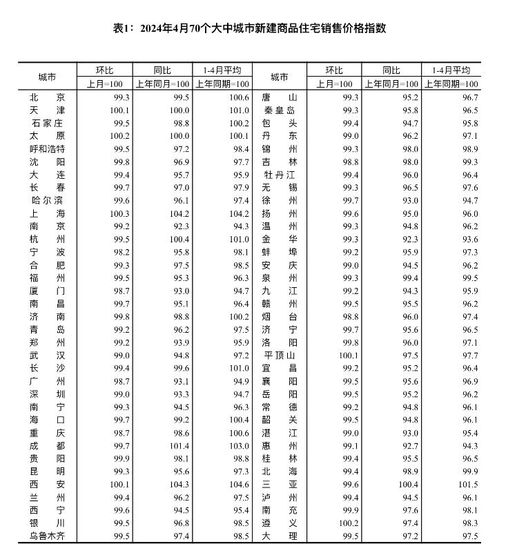 5月17日,国家统计局发布2024年4月份商品住宅销售价格变动情况统计数据,70个大中城市中,各线城市商品住宅销售价格环比、同比降幅均有所扩大。