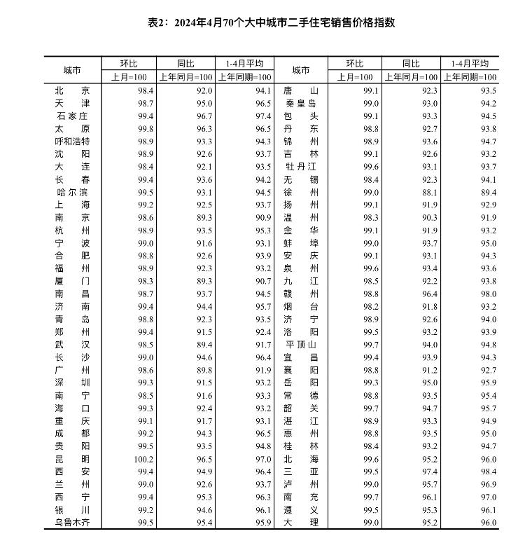二手房方面,4月69个城市二手住宅价格环比下降,昆明环比上涨。表源国家统计局