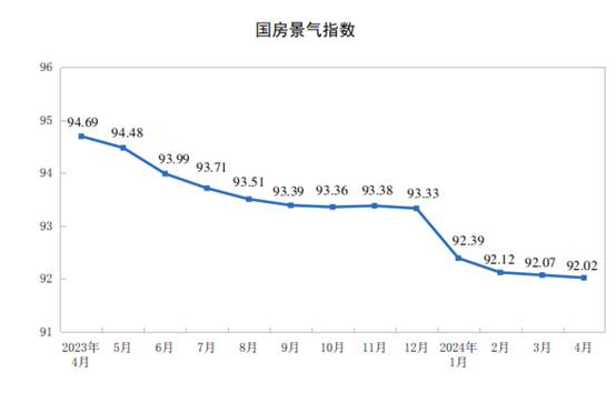 4月份,房地产开发景气指数(简称“国房景气指数”)为92.02。表源国家统计局