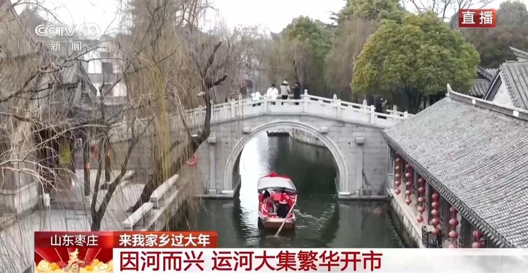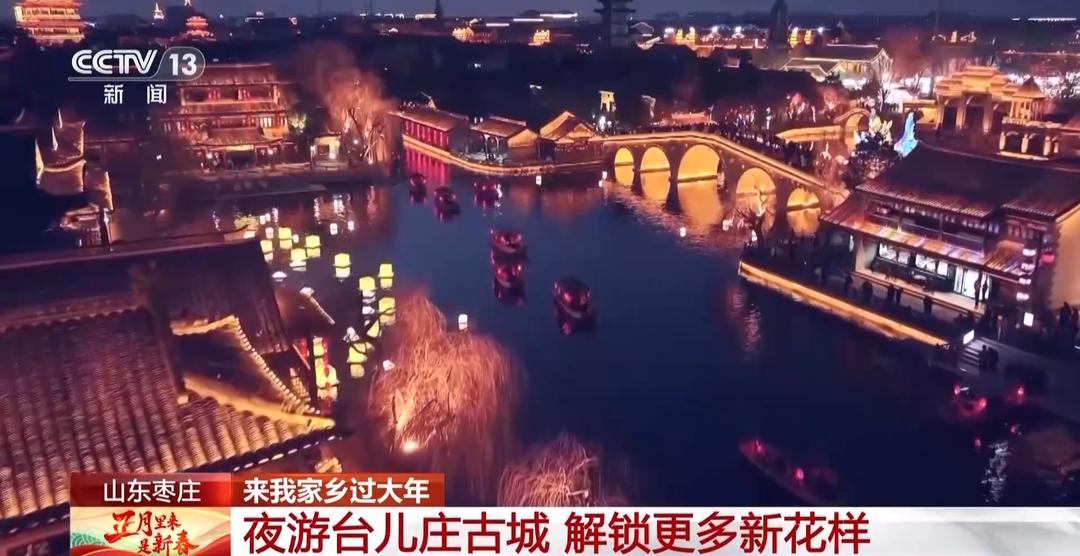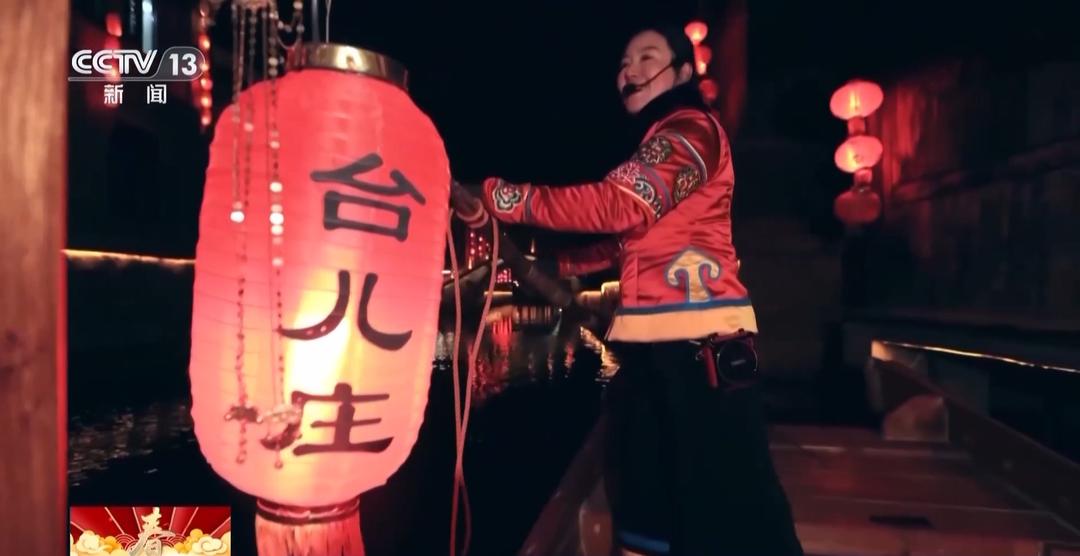 总台记者 宋文瑾:这里有句话叫作“不坐摇橹船,枉来台儿庄。”每当夜幕降临,听着船妹子的歌声,行驶在古河道上,仿佛进入了画中世界。