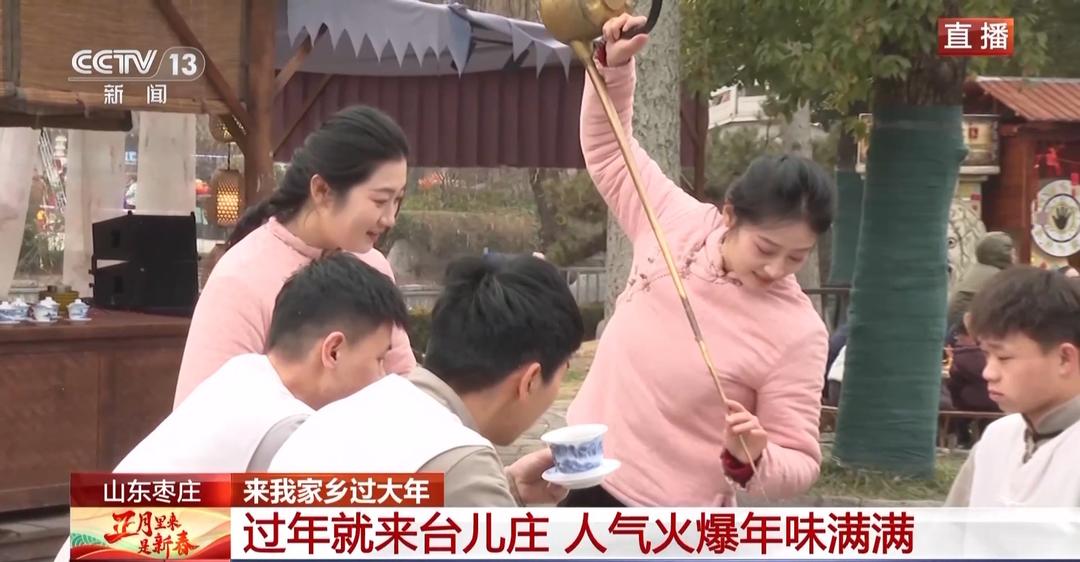 总台记者 宋文瑾:我在京杭大运河的中心点——台儿庄古城,舞龙舞狮正在精彩上演,红红火火的长龙在空中翻腾起舞,威风凛凛的狮子精神抖擞、活灵活现,浓浓的年味儿扑面而来!不远处的中幡舞狮表演,看得人热血沸腾,艺人们高超的技巧和惊人的力量引得现场叫好声不断,掌声和欢呼声响成一片。