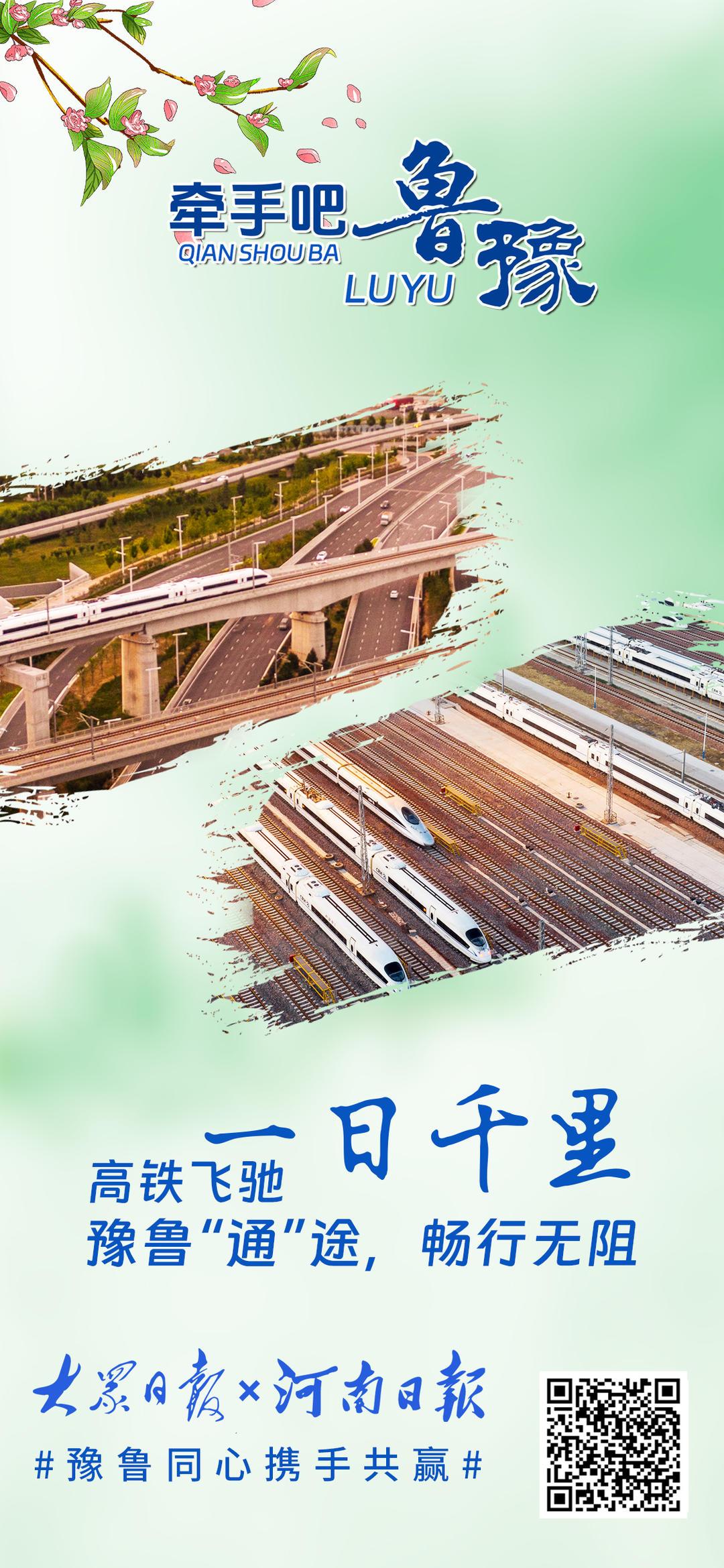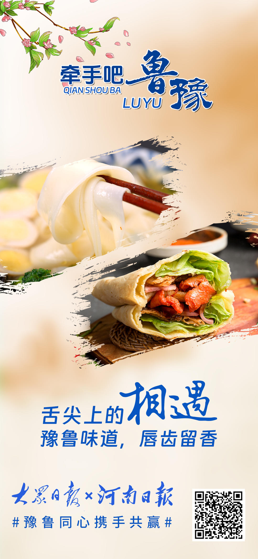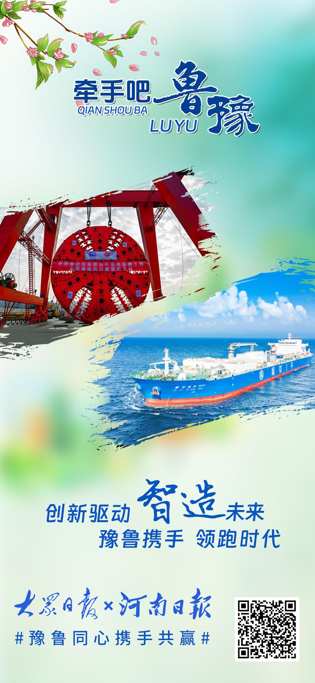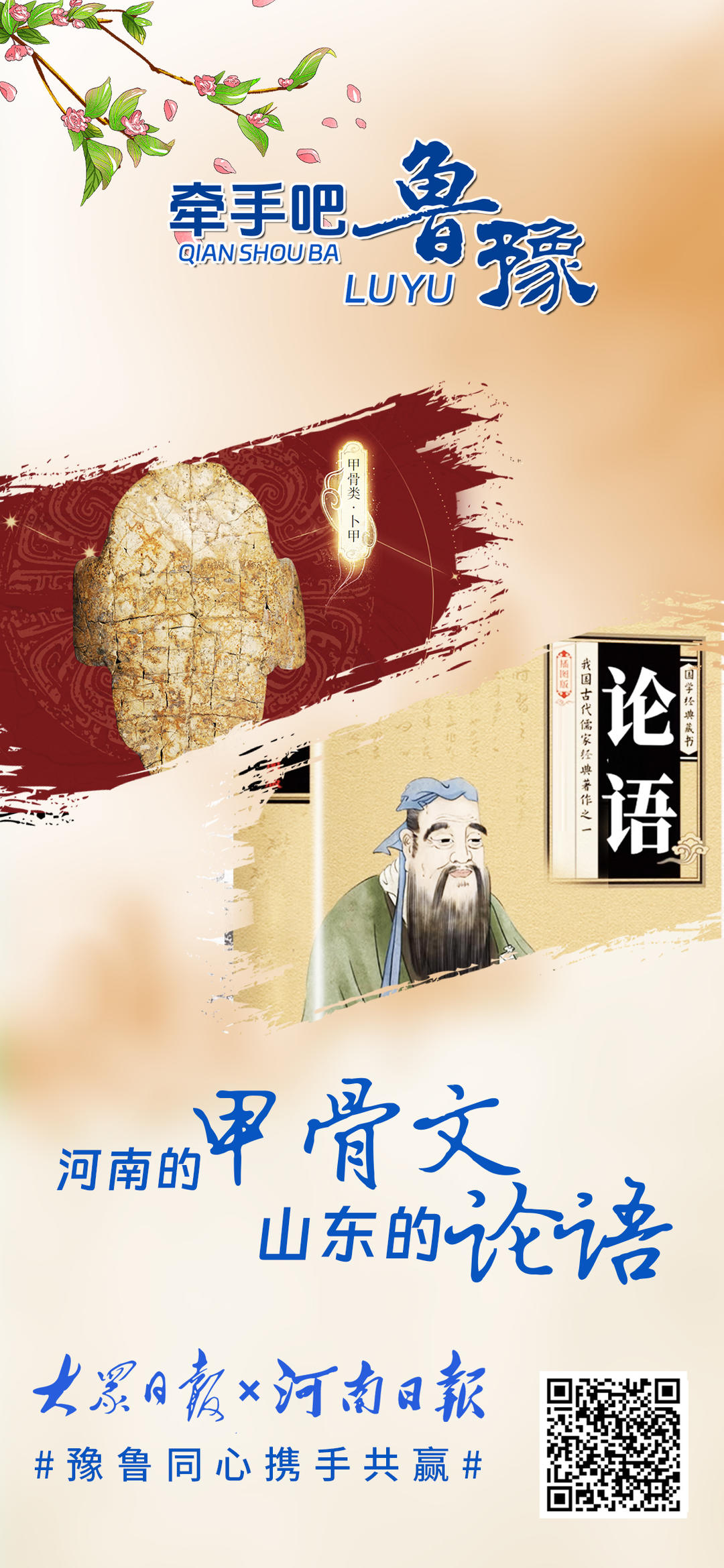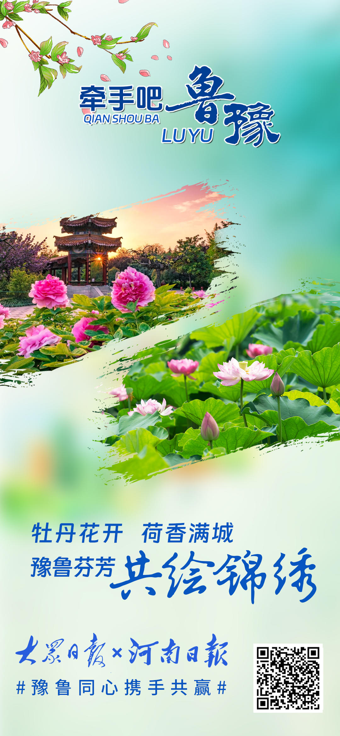 黄河奔流,五千年文明滋养鲁豫大地,孕育两地深厚底蕴。从甲骨文到《论语》,文化交融心心相印;从济郑高铁、日兰高铁贯通到创新智造突破,鲁豫携手领跑新时代。少林寺与泰山相望,烩面与煎饼飘香,牡丹与荷花共绽芬芳。地标相映,情谊相连,鲁豫合作未来可期。