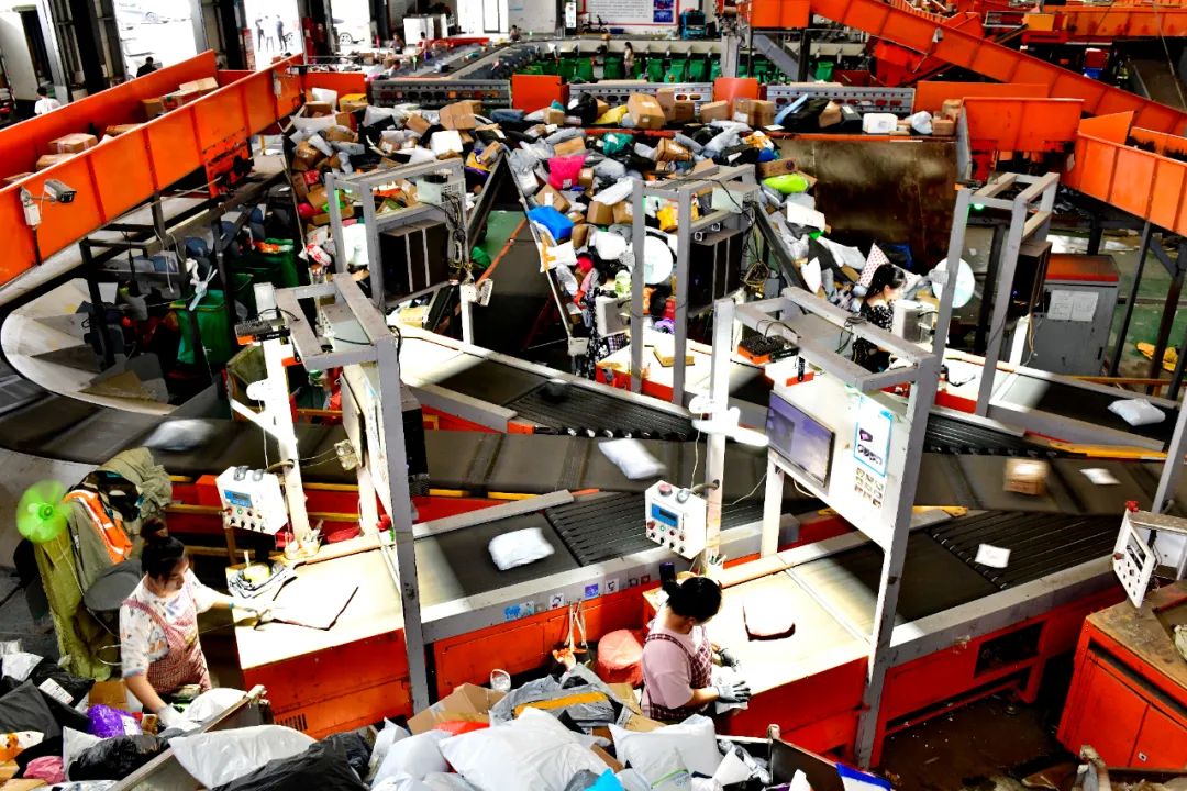 6月18日,在曹县电子商务物流公共服务中心,工作人员在分拣快递。新华社记者 郭绪雷 摄