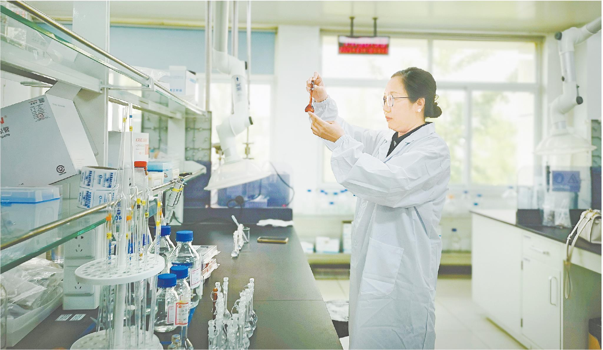 鲁南制药集团国际药品研发中心液体制剂负责人在工作。(□记者徐明报道)