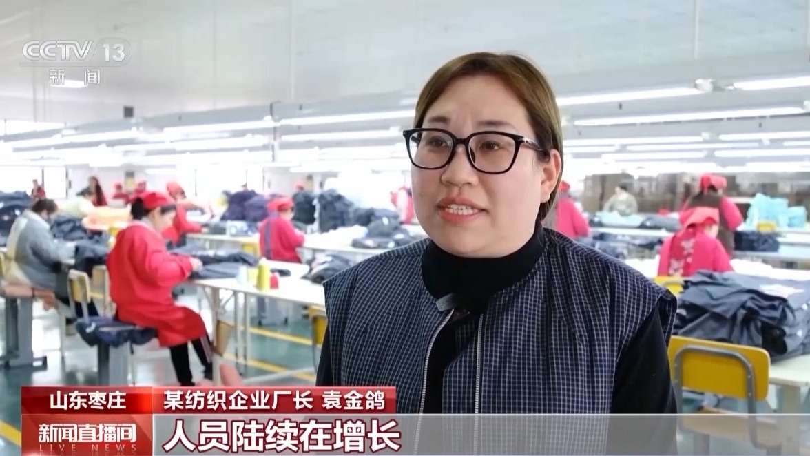 某纺织企业厂长 袁金鸽:人员陆续在增长,我们订单现在接到六月份了。