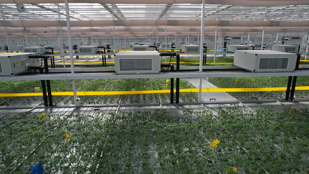 在这座智慧温室里,500余个传感器和1100余个控制器正持续不断地将温度、湿度、光照等环境数据及优化参数上传至后台大屏幕,实现对生产流程的精准感知与智能控制。记者在大屏幕上看到,温度、光照强度、二氧化碳浓度等数据实时跳动,每一个数字的变化都牵动着整个系统的运转。