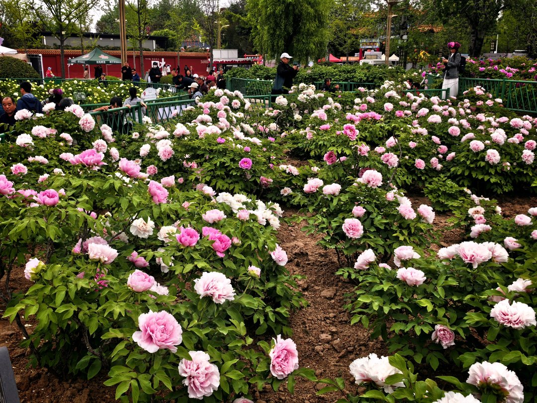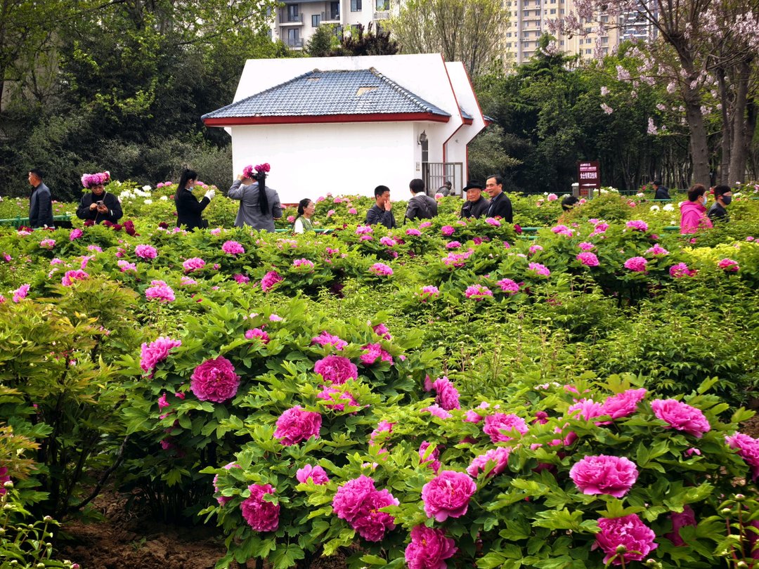 眼下,正是菏泽牡丹观赏的黄金时段。园内姚黄、魏紫、豆绿、赵粉等传统名贵品种竞相开放,皇冠、雪映桃花等优质新品种风姿卓绝,九大色系、十大花型次第舒展,或端庄典雅,或清新秀丽,或艳丽夺目,尽显“花中之王”的雍容气度与国色天香。成片牡丹连绵成海,微风拂过,花香四溢,漫步其间,仿佛置身于水墨丹青与锦绣画卷之中。而就在牡丹花海之侧,以“珊瑚落日”为代表的早花芍药已悄然登场,粉、红、紫、黄各色花苞陆续绽放,柔美的花姿与挺拔的牡丹相互映衬,刚柔并济,美不胜收。